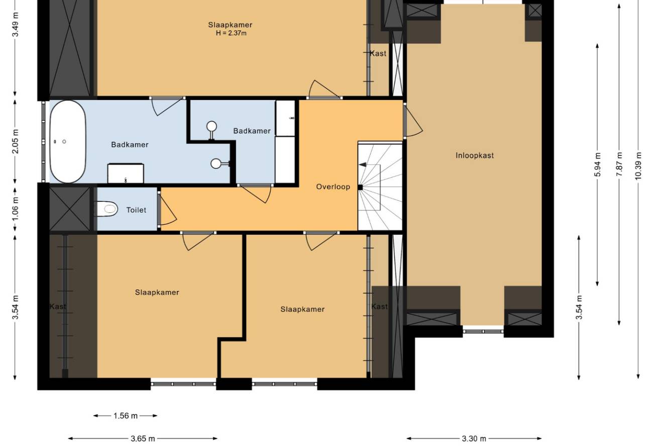 Op de zolderverdieping is een 5e grote, nog zelf in te richten, kamer met Velux dakraam en inbouwspots.