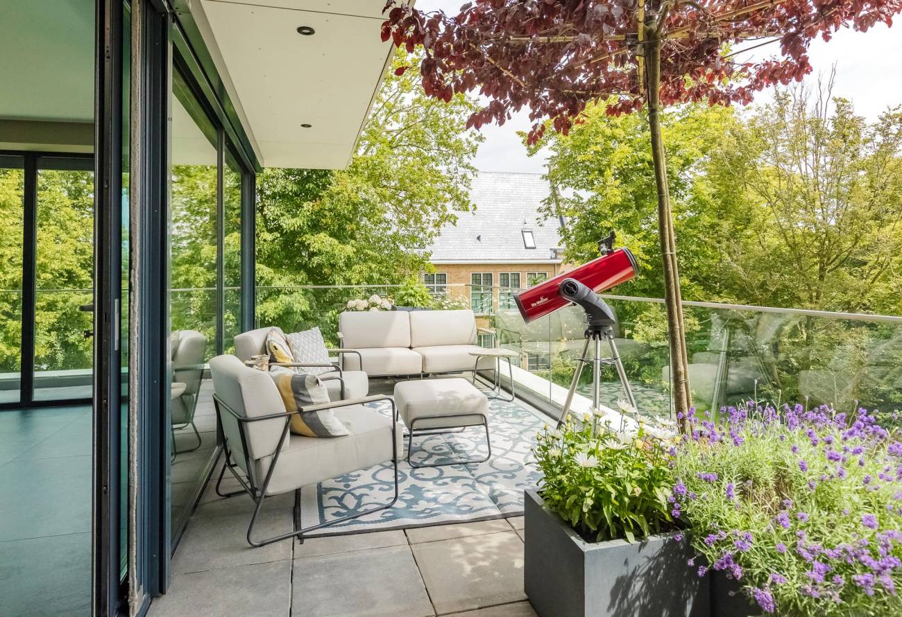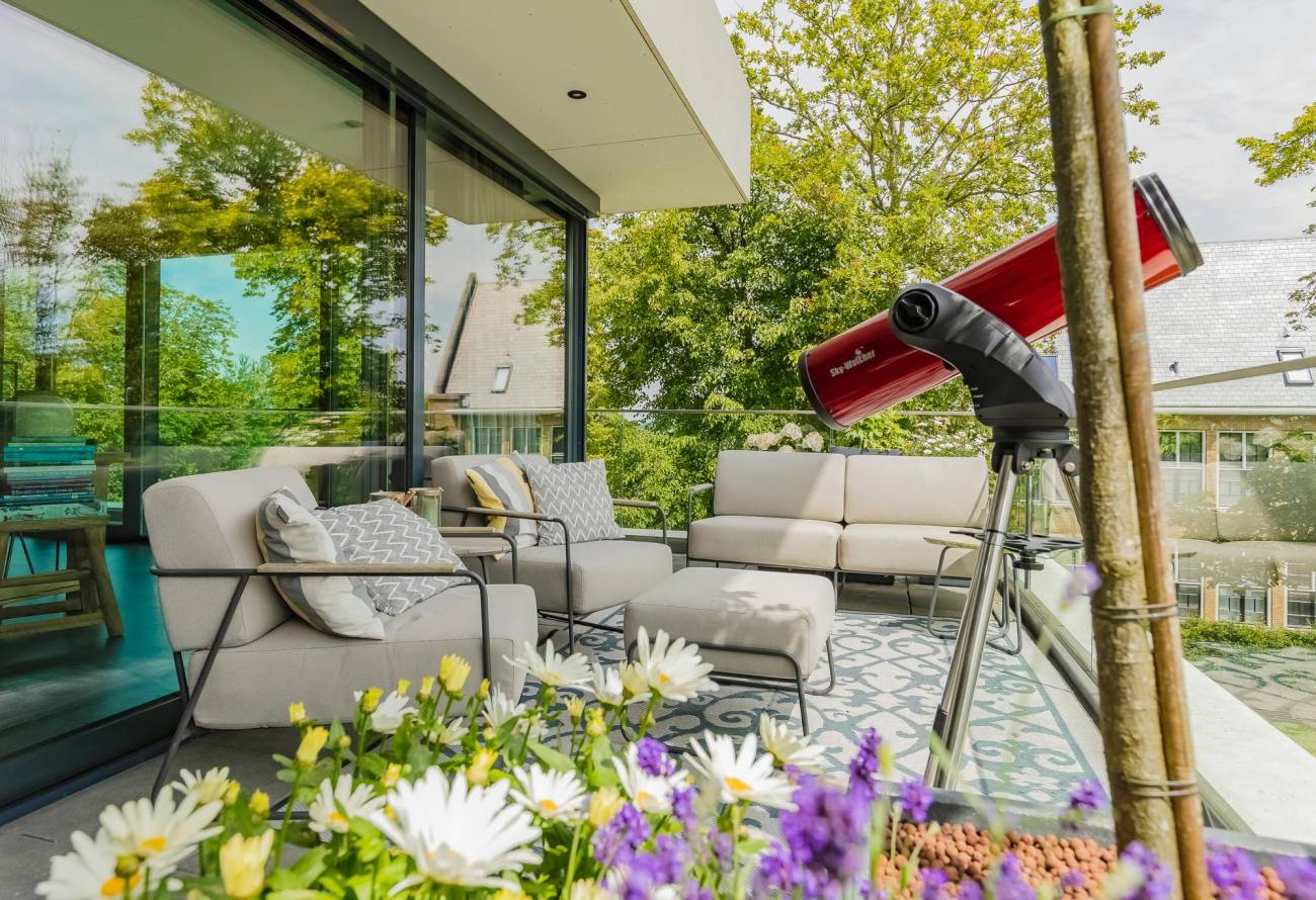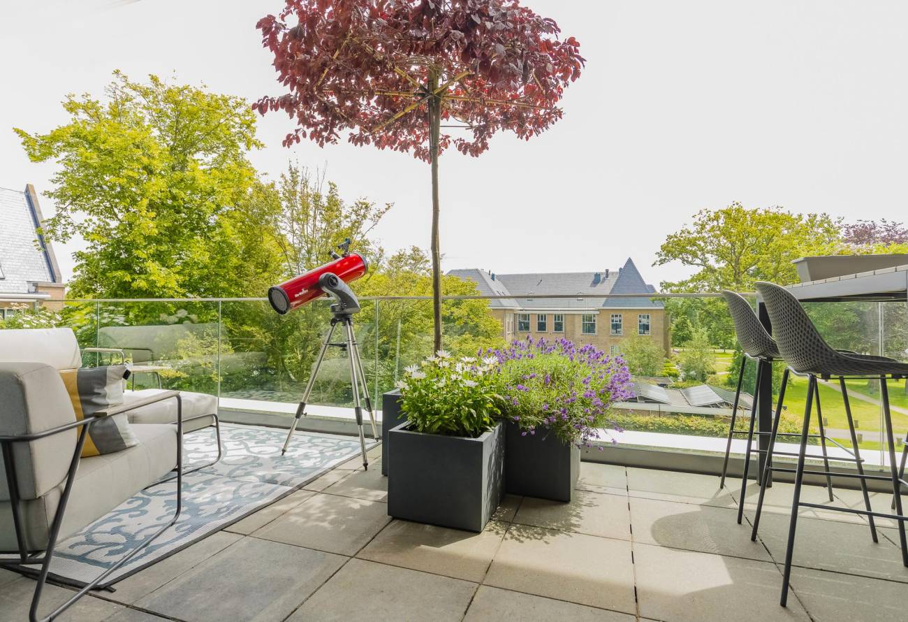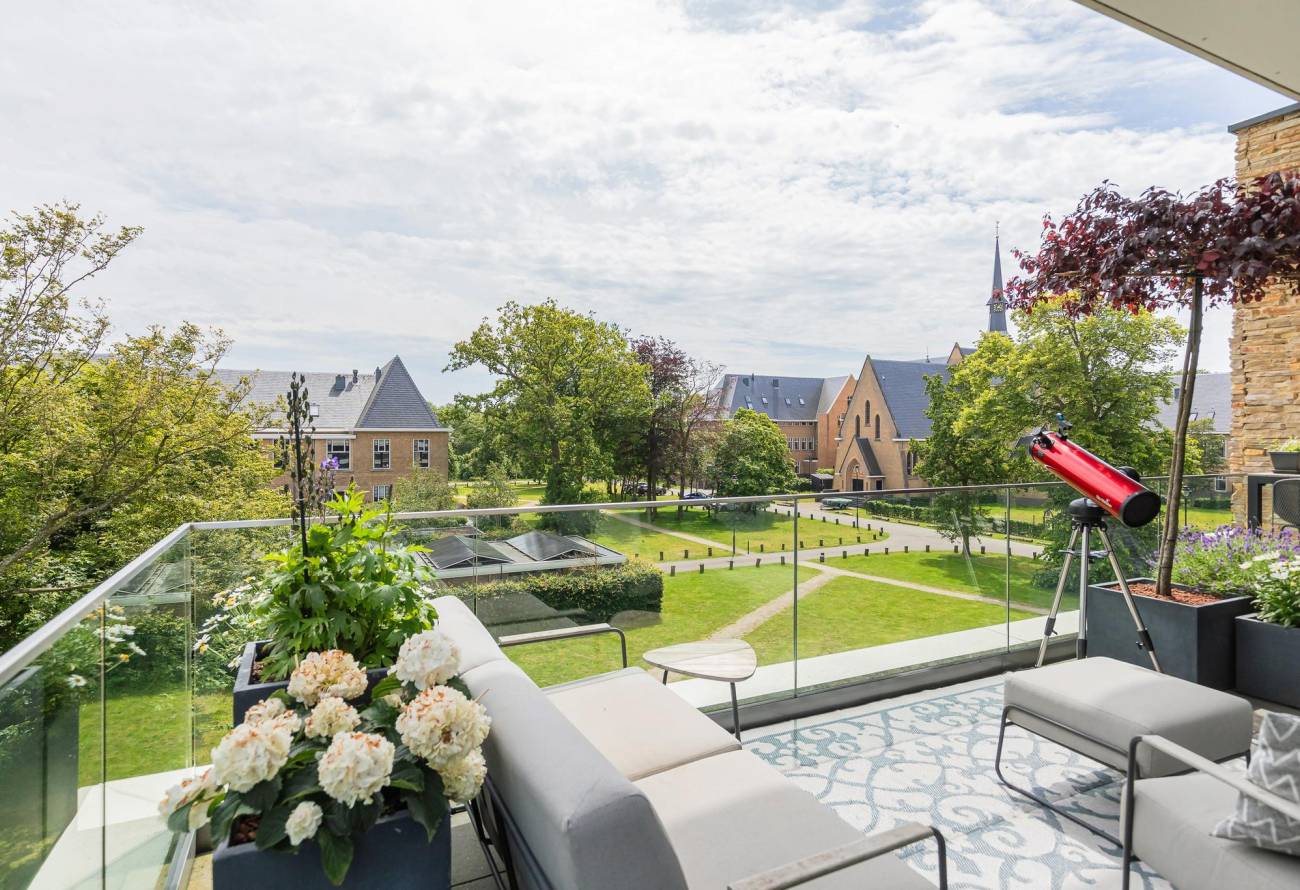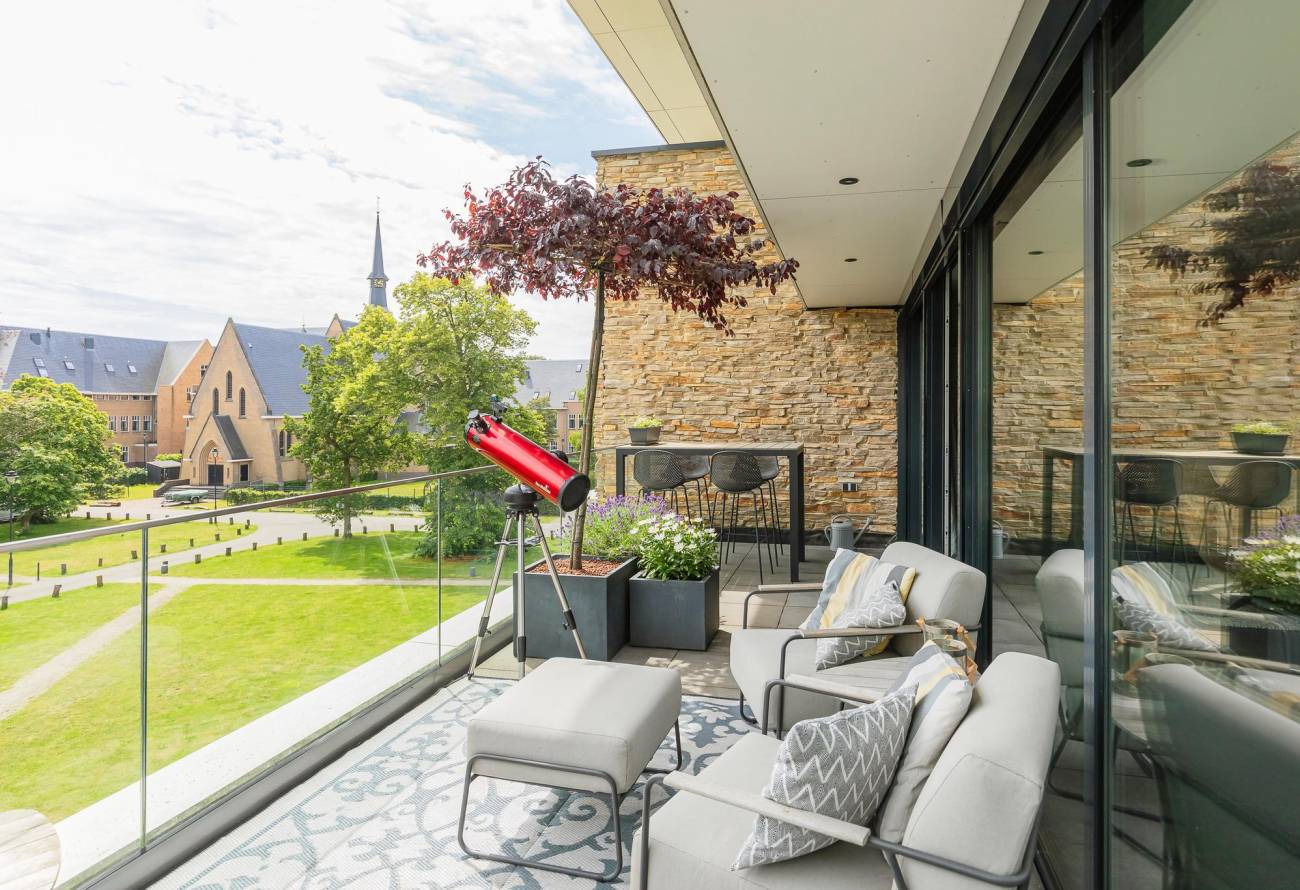 Er zijn twee balkons, het grootste balkon aan de voorzijde biedt een oase van rust en groen, met een fantastisch uitzicht over het landgoed Sancta Maria, perfect voor zonnige dagen en relaxte avonden.