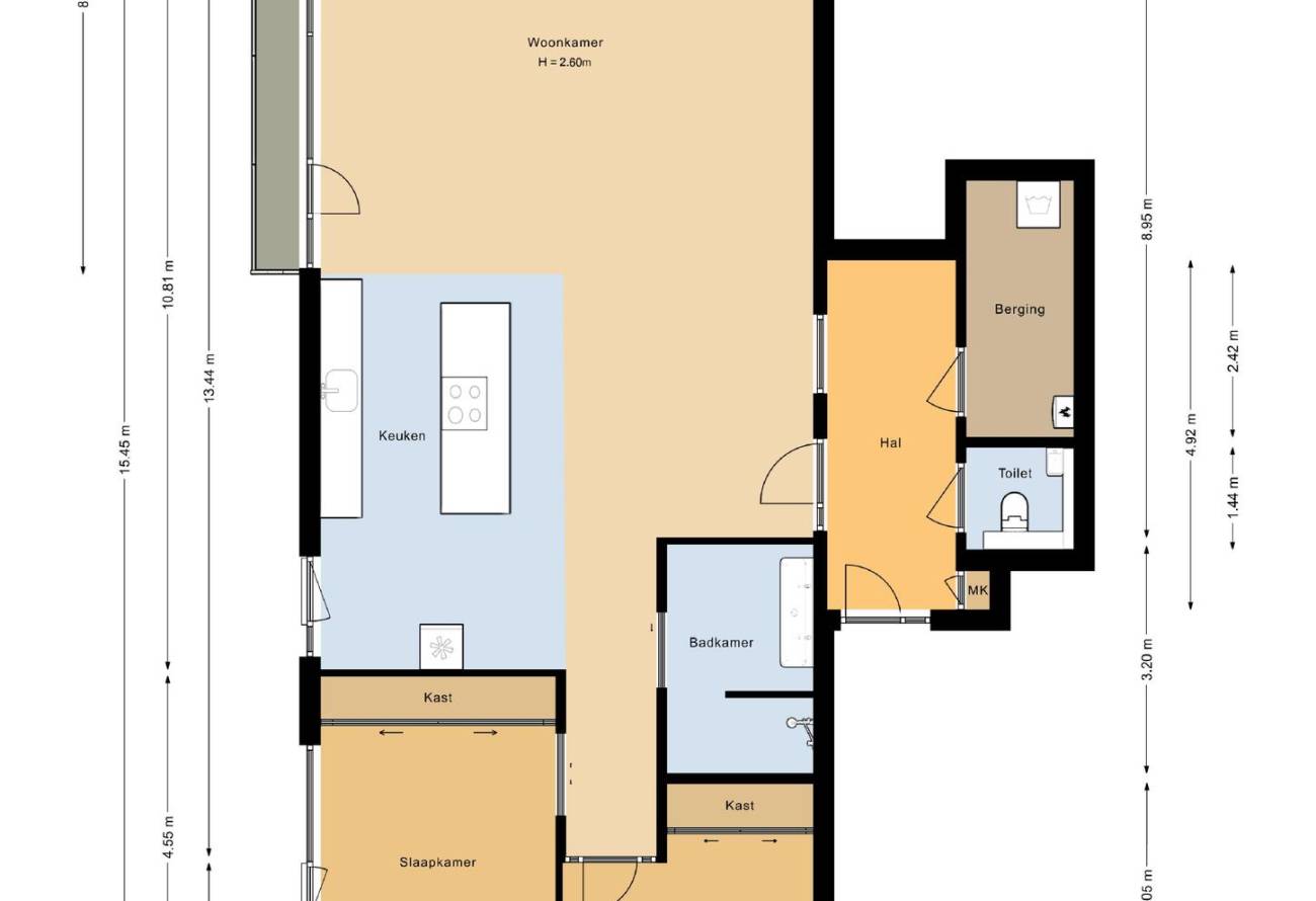 Verder is er in de hal een technische ruimte, berging en een toiletruimte.