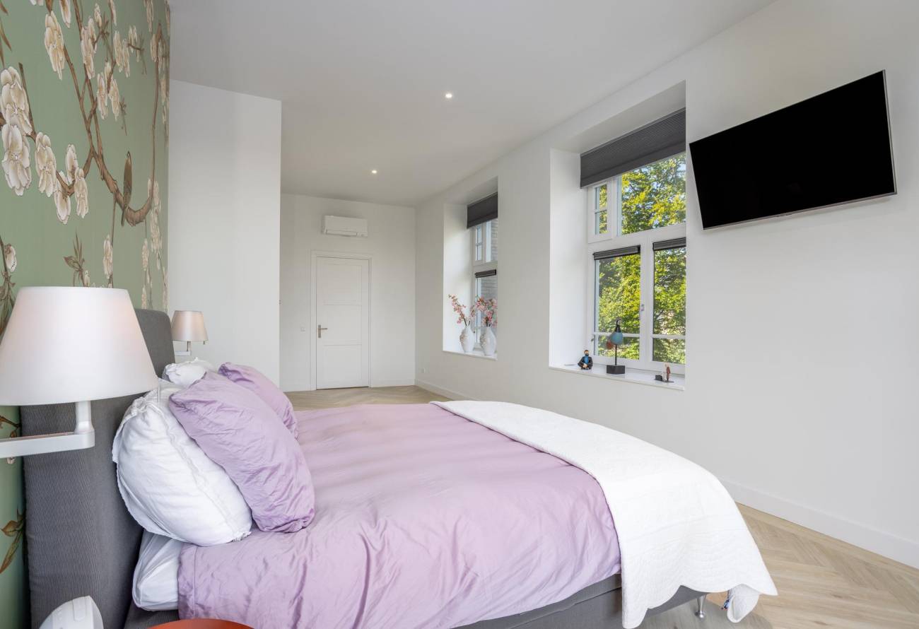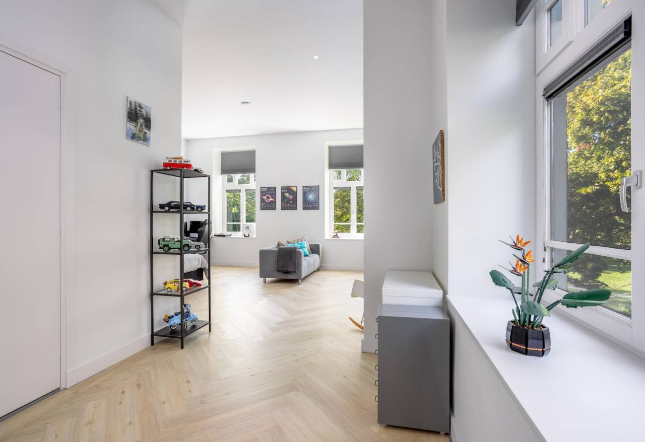 Dit huis is gelegen in het paviljoen Bernadette en is te bereiken via de hoofdingang van Sancta Maria en een laan met lange rij aan bomen. De fraaie woning is zeer rustig gelegen midden op het landgoed terrein met geen directe wegen langs de woning. De buiten- én binnenzijde is luxe afgewerkt en aan de buitenzijde eind 2021 geheel geschilderd. Voorzien van de laatste gimmicks, hoge plafonds, vloerverwarming, airco op de slaapkamers en een visgraatvloer op alle 4 de verdiepingen.
