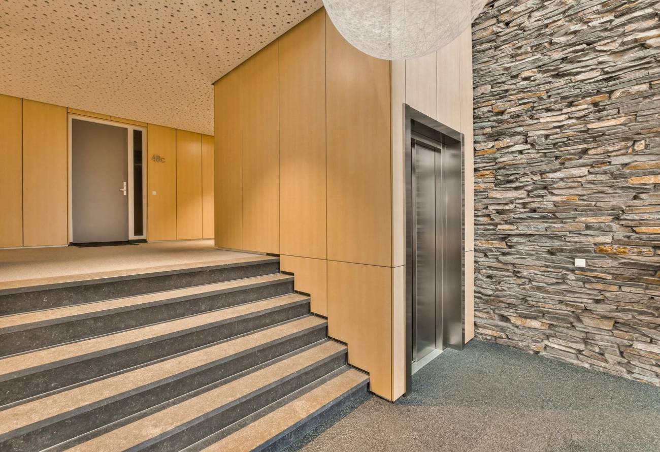 Zeer fraaie en ruim opgezette centrale entree, afgesloten door een elektrisch bedienbare toegangsdeur, met brievenbussen, videofoon/intercominstallatie, trappenhuis en liftinstallatie.
