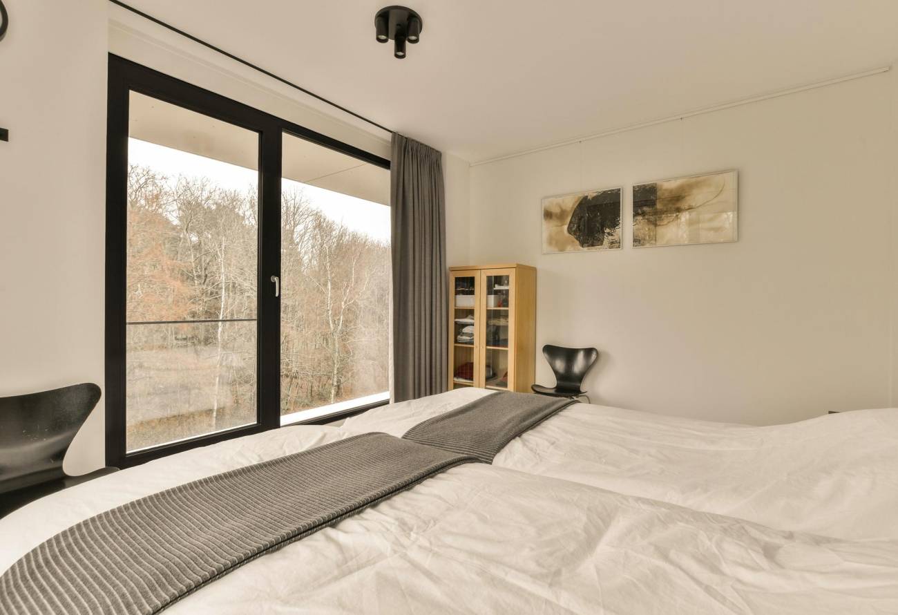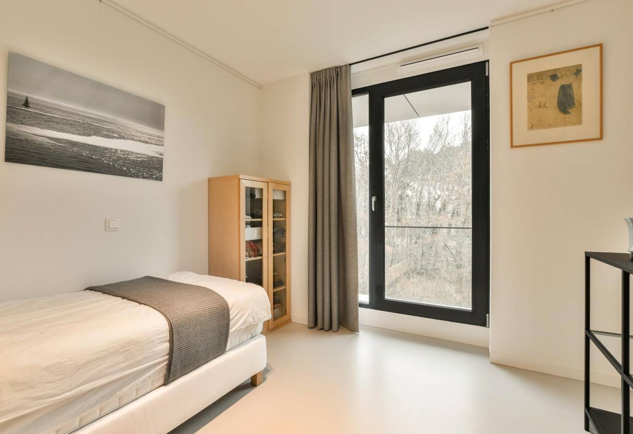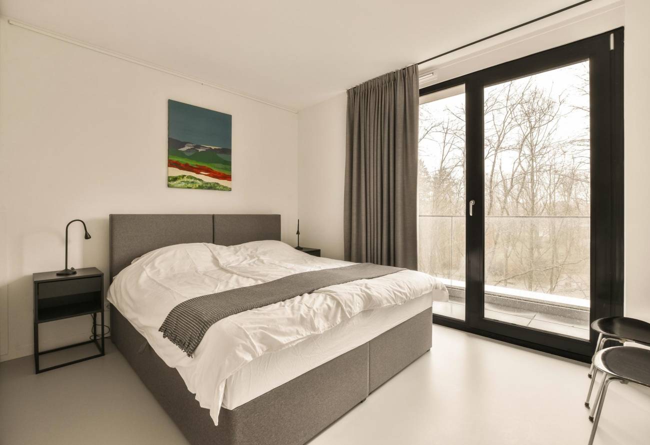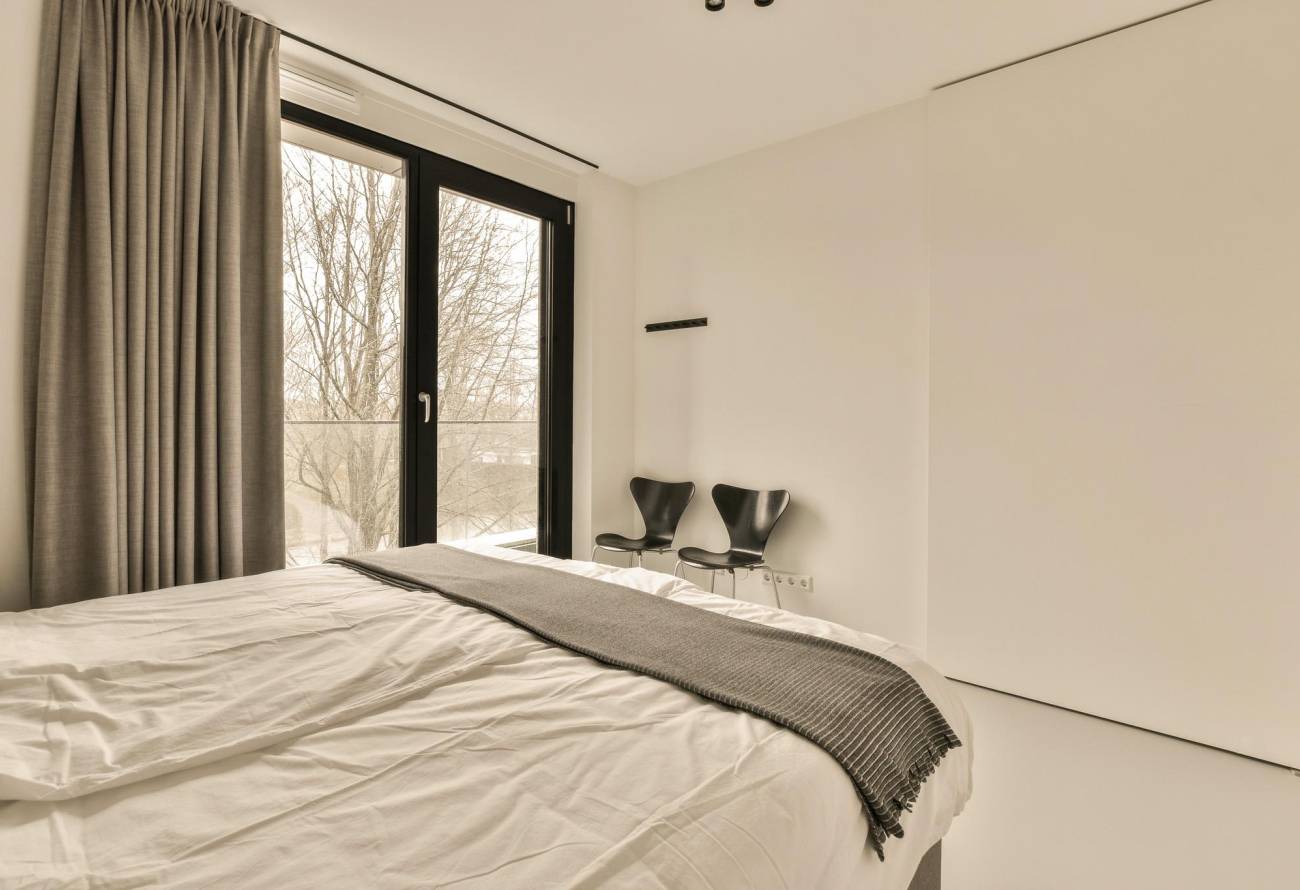 In de hal naar de slaapkamer is een taatsdeur geplaatst waardoor er op slimme wijze een slaapkamer is gecreëerd. Mocht dat niet de wens zijn kan de deur geheel open worden gehouden, waardoor er nog meer lichtinval binnenkomt in het appartement. Deze twee ruime slaapkamers zijn gelegen aan de achterzijde en hebben beiden toegang tot het balkon. De derde slaapkamer is optimaal te gebruiken voor logés of als kantoorkamer.