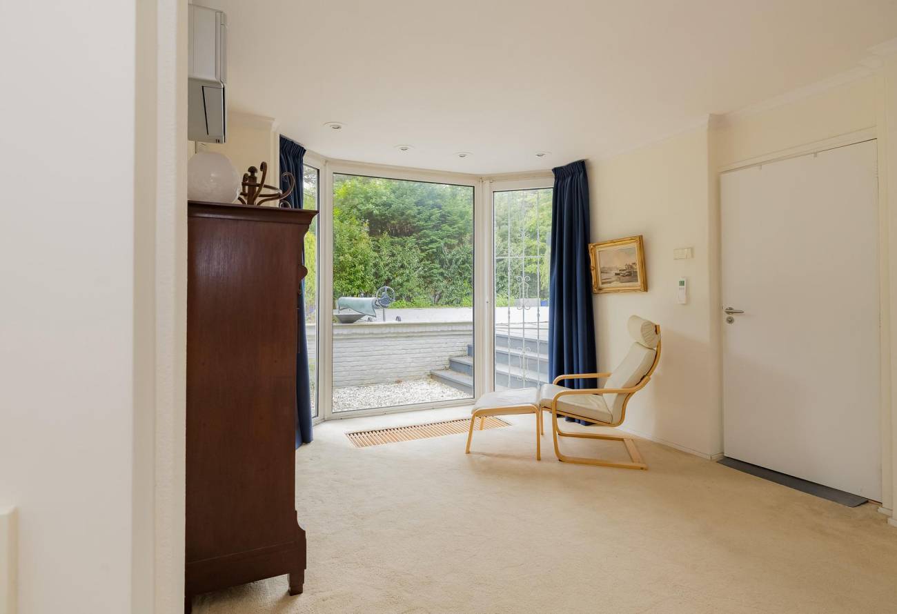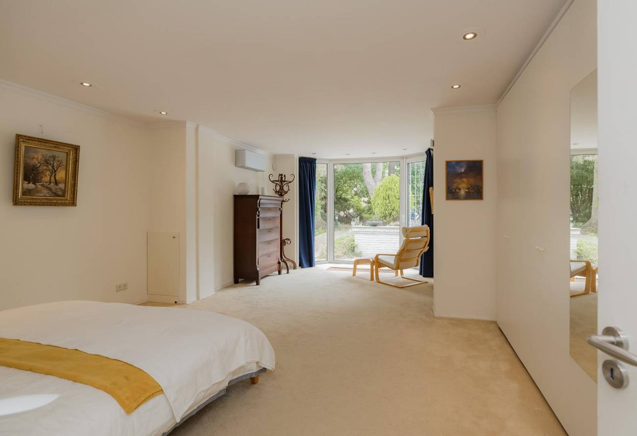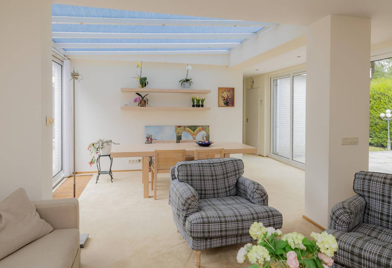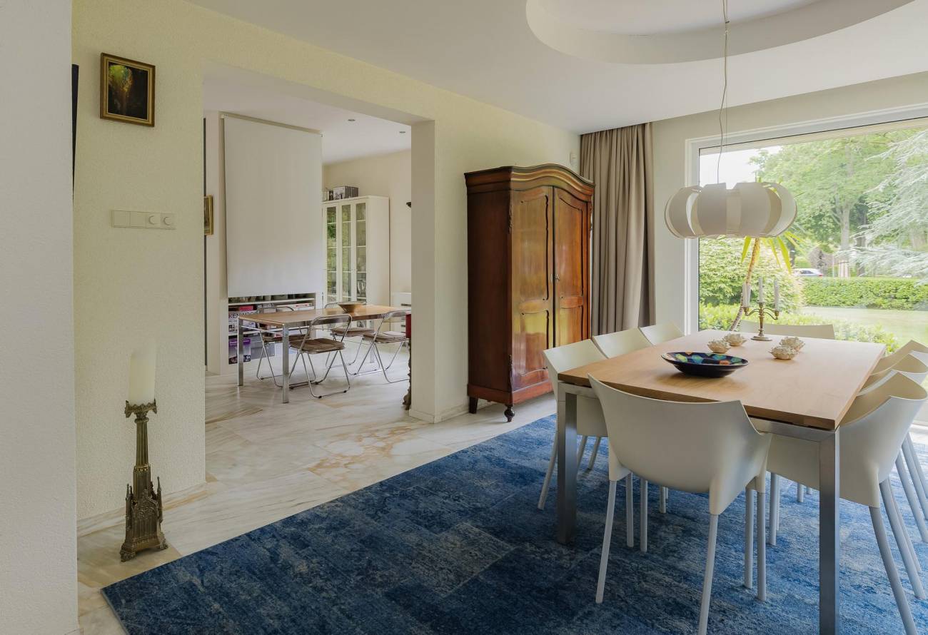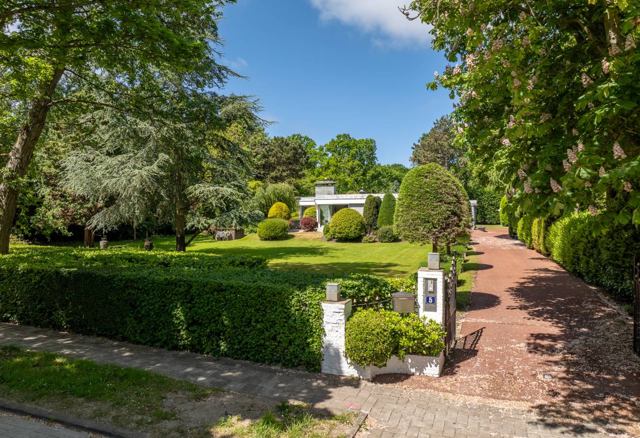 Vanaf de statige oprijlaan, omzoomd met hagen en volwassen bomen, voel je direct de rust en het royale karakter van dit perceel. Via de dubbele voordeur betreed je een indrukwekkende ontvangsthal, die leidt naar een royale, lichte woonkamer met haard. De eetkamer en de gezellige study met erker lopen hier naadloos in over. Grote schuifpuien en raampartijen zorgen voor een prachtig zicht op de Japanse tuin en een overvloed aan daglicht.