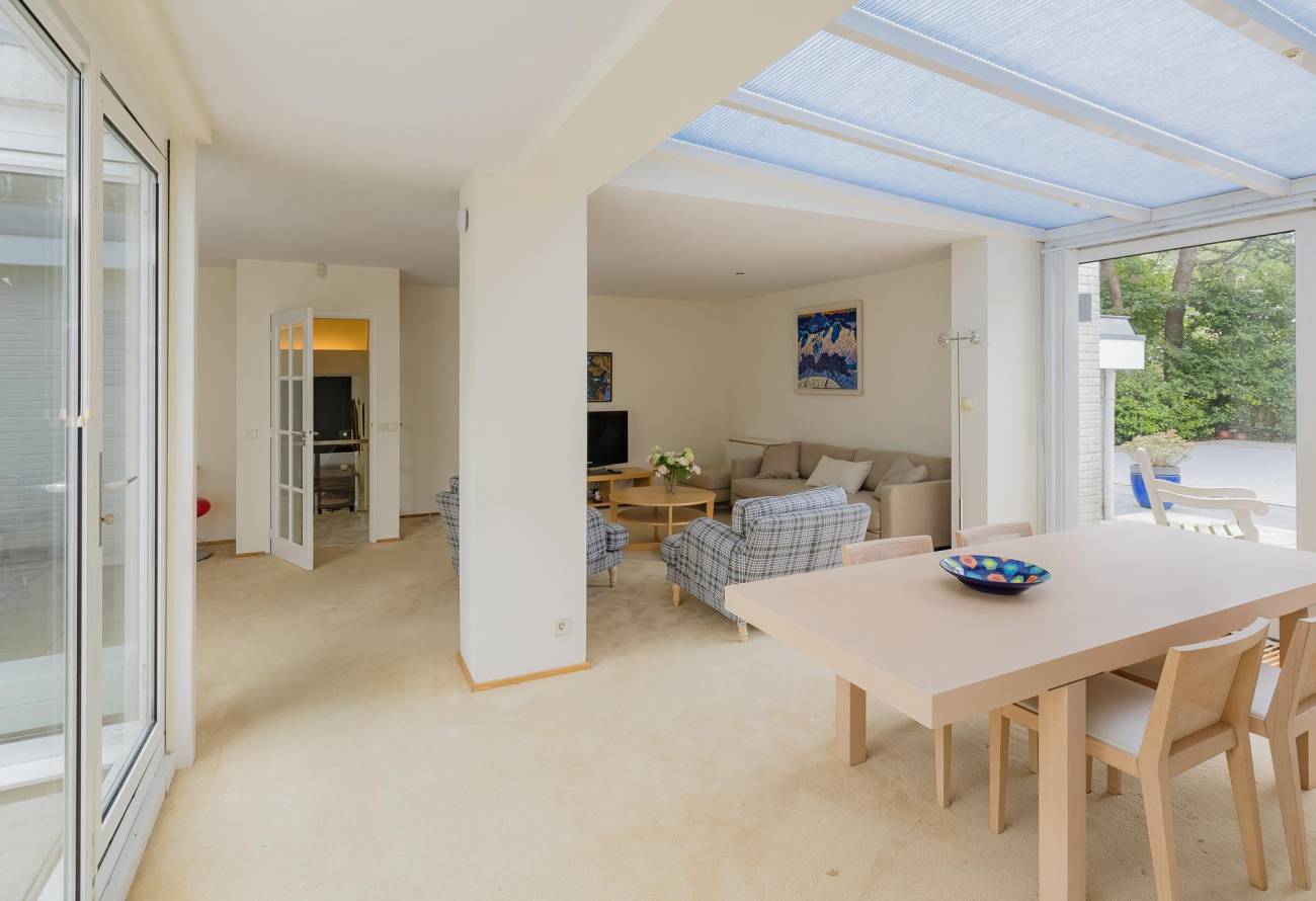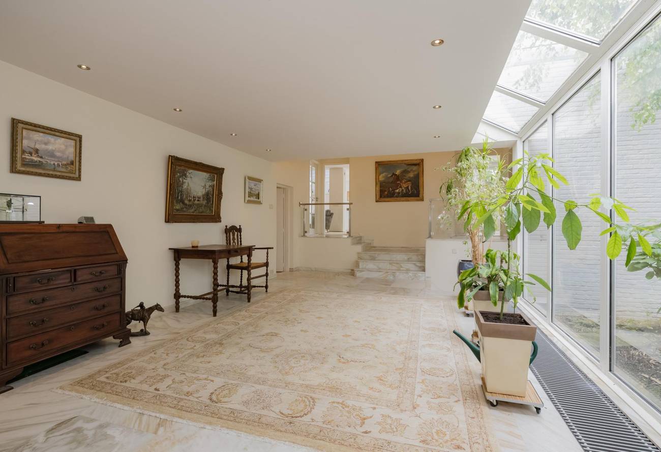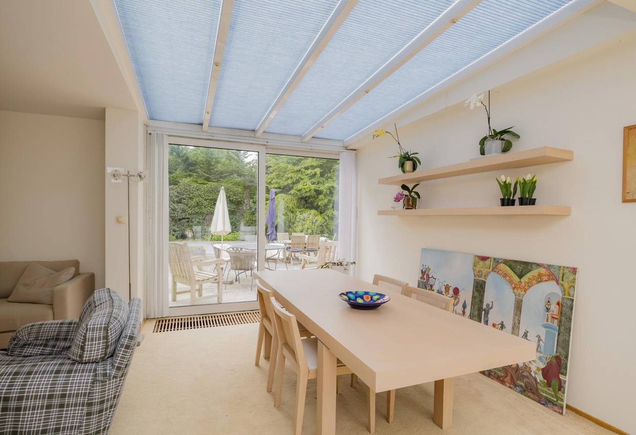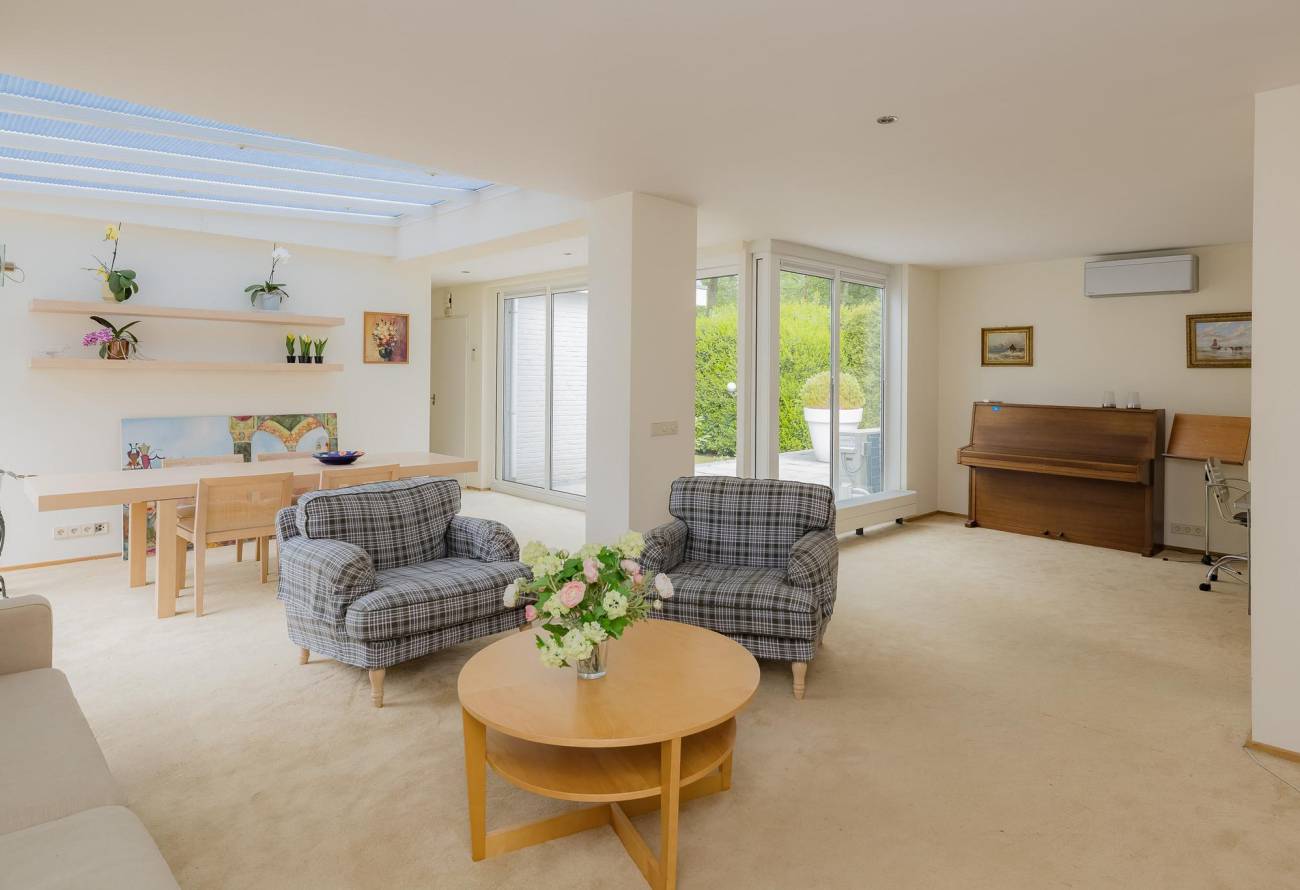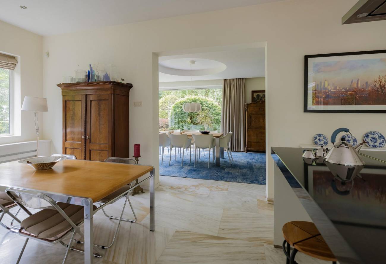 Vanaf de statige oprijlaan, omzoomd met hagen en volwassen bomen, voel je direct de rust en het royale karakter van dit perceel. Via de dubbele voordeur betreed je een indrukwekkende ontvangsthal, die leidt naar een royale, lichte woonkamer met haard. De eetkamer en de gezellige study met erker lopen hier naadloos in over. Grote schuifpuien en raampartijen zorgen voor een prachtig zicht op de Japanse tuin en een overvloed aan daglicht.