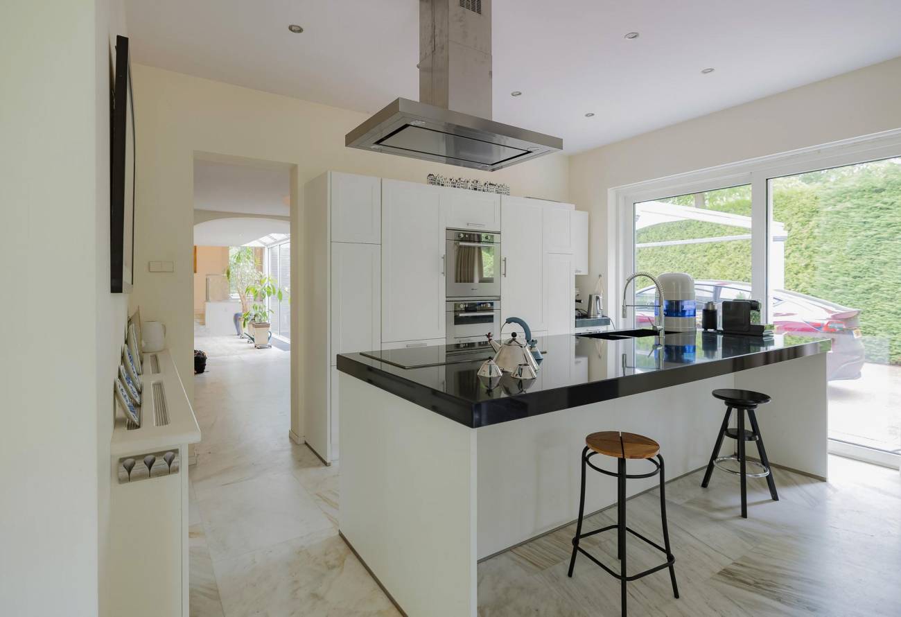 De open woonkeuken is licht, ruim en compleet uitgerust met een spoel-/kookeiland en hoogwaardige inbouwapparatuur – ideaal voor wie graag kookt of gasten ontvangt.
