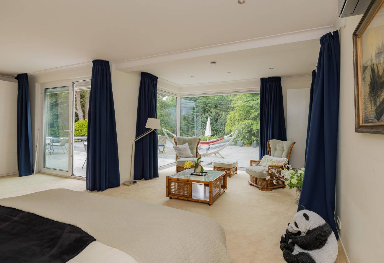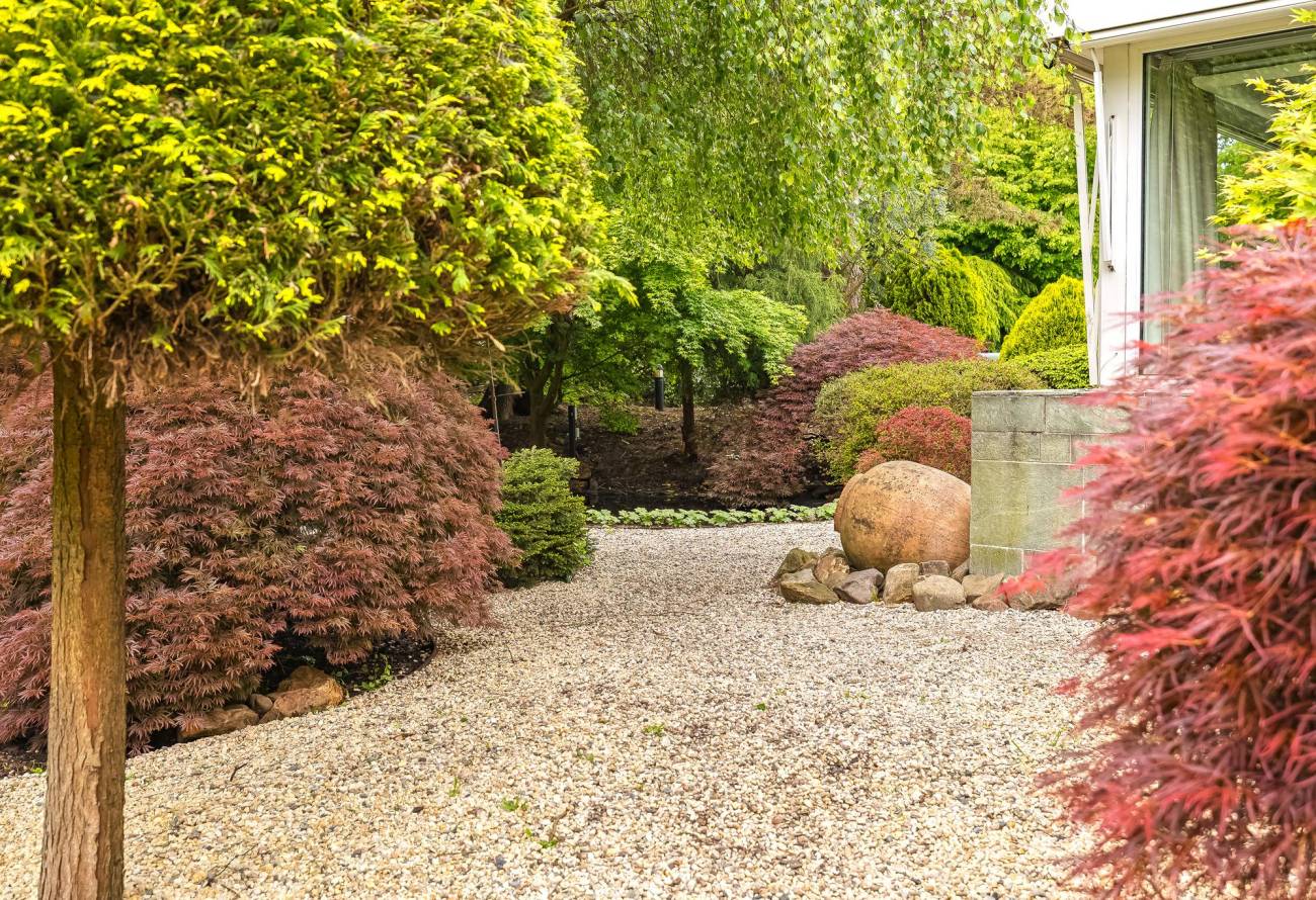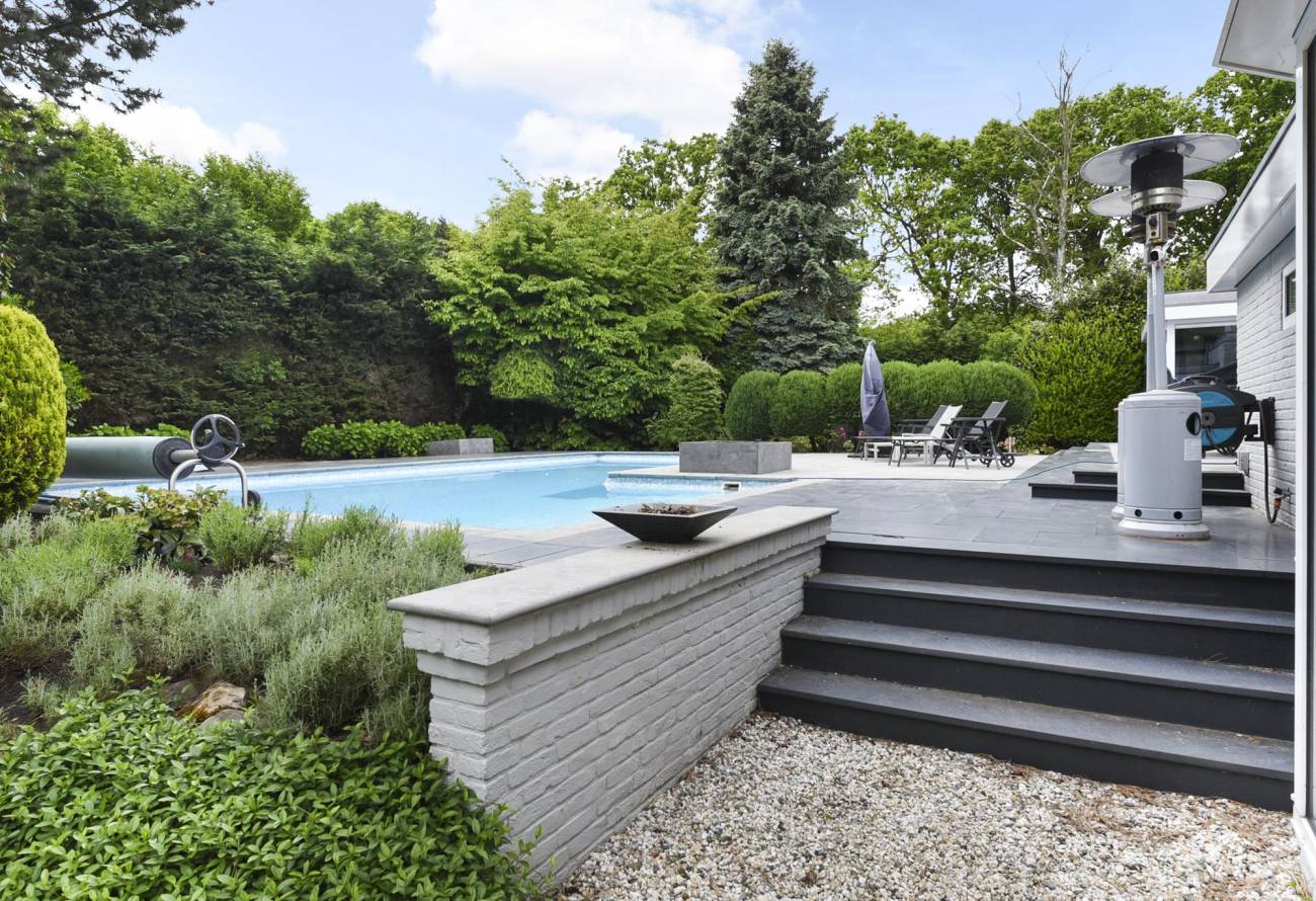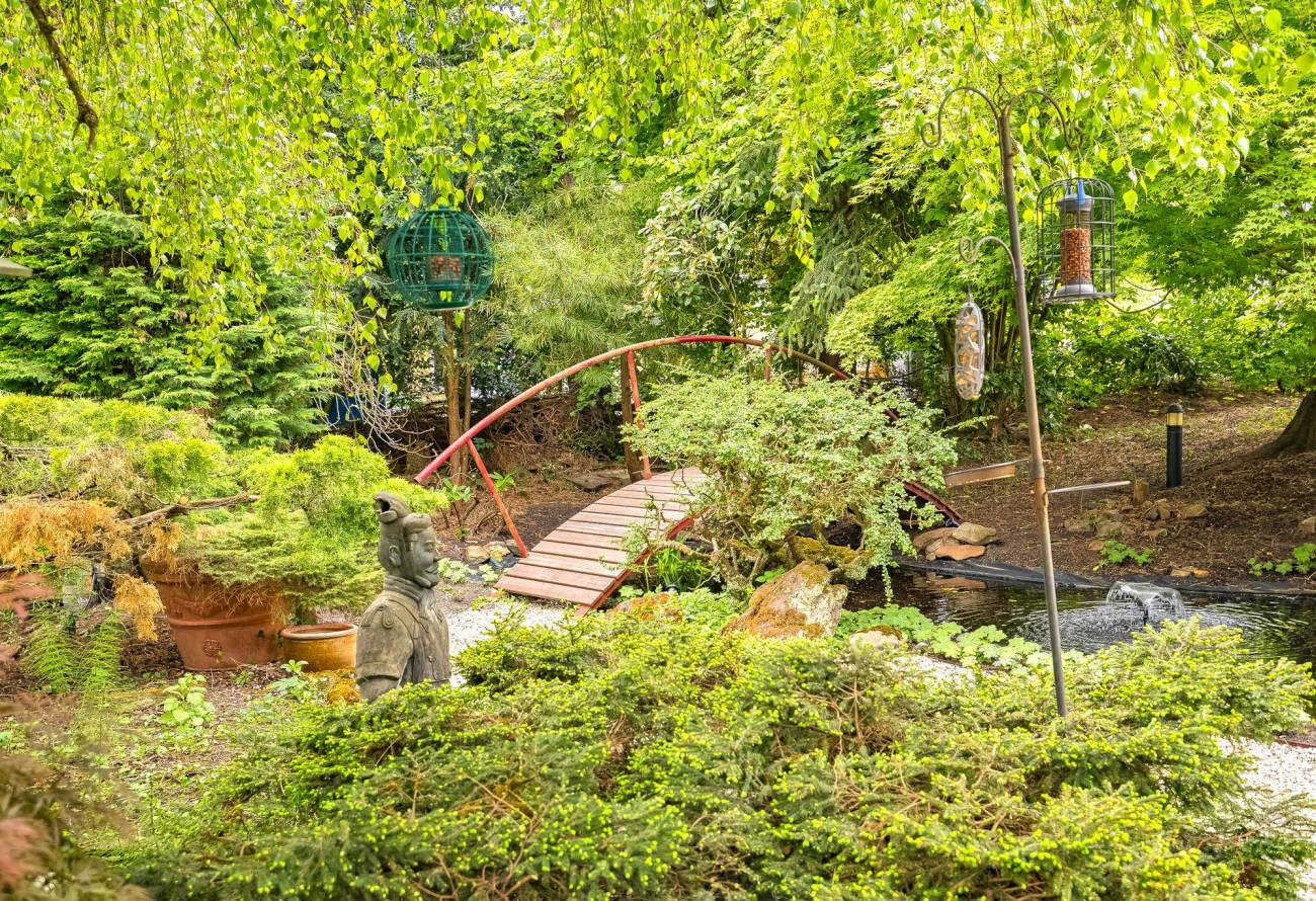 In de zorgvuldig aangelegde Japanse tuin wandelt u over het charmante bruggetje langs sierlijke beplanting en natuurlijke elementen die een gevoel van harmonie oproepen. Verderop nodigt het royale zwembad met groot zonneterras u uit voor ontspanning op warme dagen – een privéresort in uw eigen achtertuin.