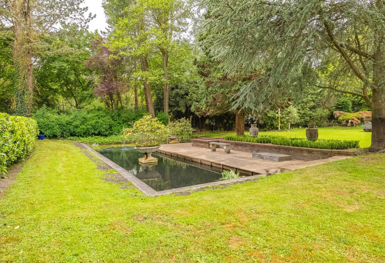 Vanaf het moment dat u de statige oprijlaan oprijdt, ervaart u de allure van deze bijzondere plek. De tuin is een waar landschap om in te leven én te genieten. Twee elegante vijvers met fontein vormen het hart van deze groene oase en zorgen voor een rustgevende ambiance, zowel overdag als 's avonds, wanneer de subtiele tuinverlichting het geheel sprookjesachtig uitlicht.