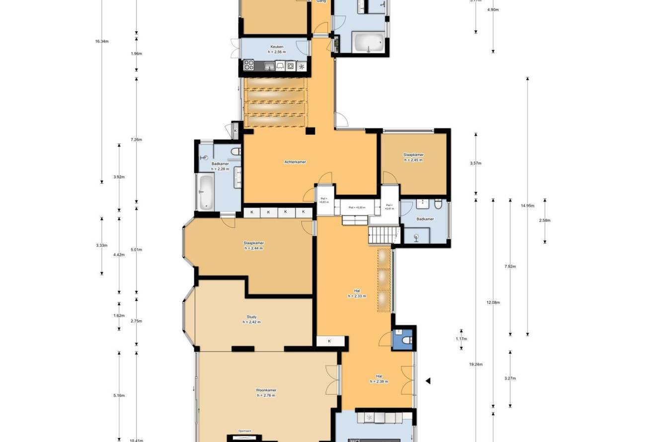 | Badkamers | 3 badkamers, 1 aparte toiletten |