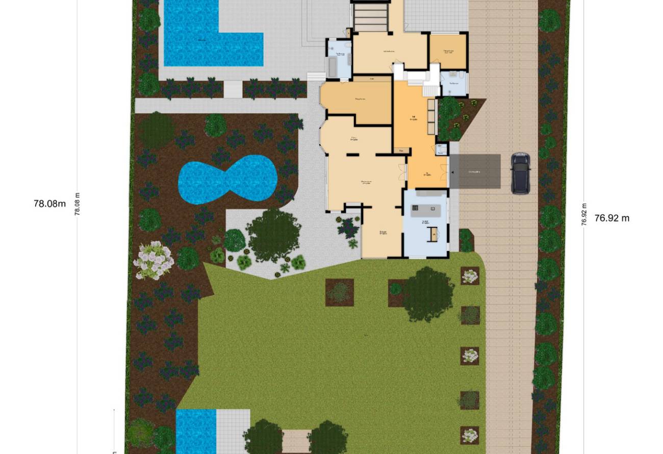 De woning beschikt over vier slaapkamers en drie badkamers. De hoofdslaapkamer heeft een eigen badkamer en-suite met jacuzzi en een royale kastenwand. Dankzij een tweede woonkamer en een tweede keuken is deze bungalow ook zeer geschikt voor dubbele bewoning, mantelzorg of au pair.