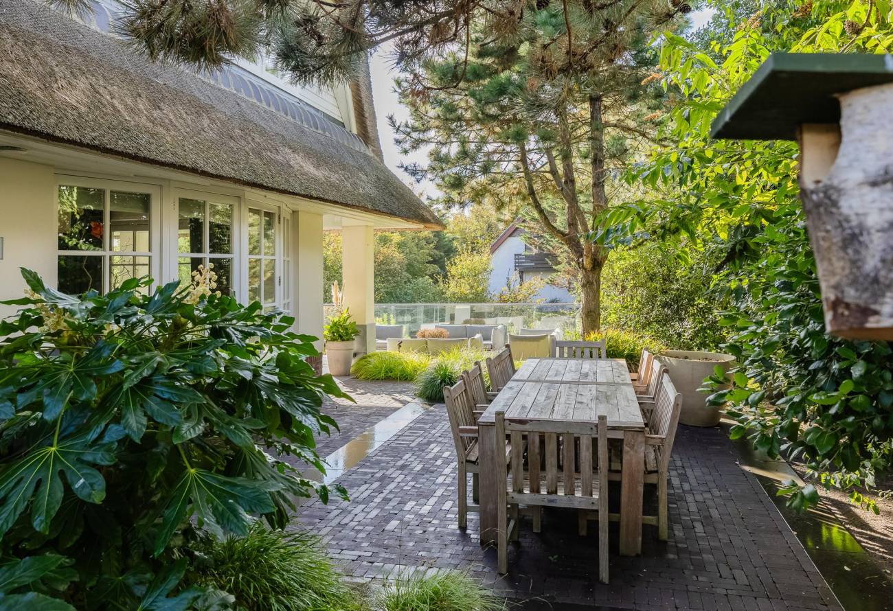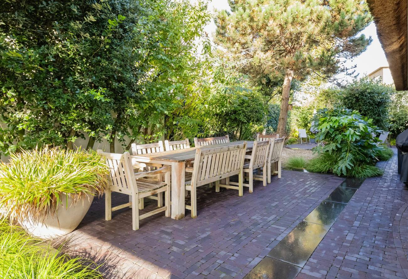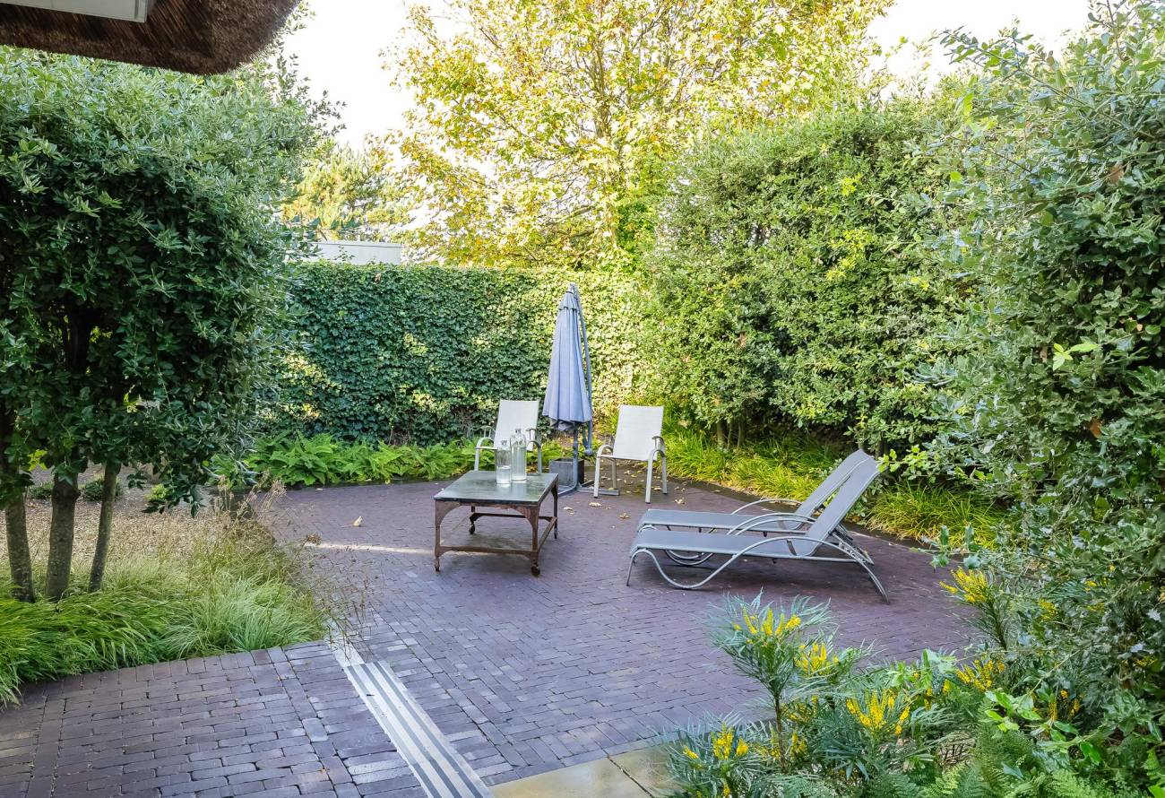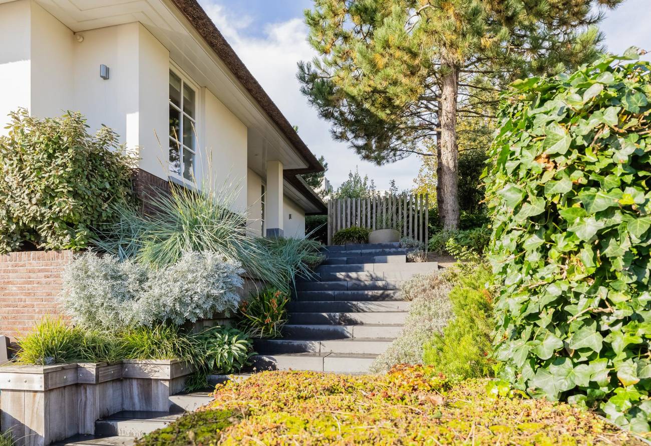 De grote tuin is onder architectuur aangelegd met diverse terrassen, een speelse trap, paden en vele struiken en bomen. Op de terrassen is het heerlijk genieten van de zon en de privacy.