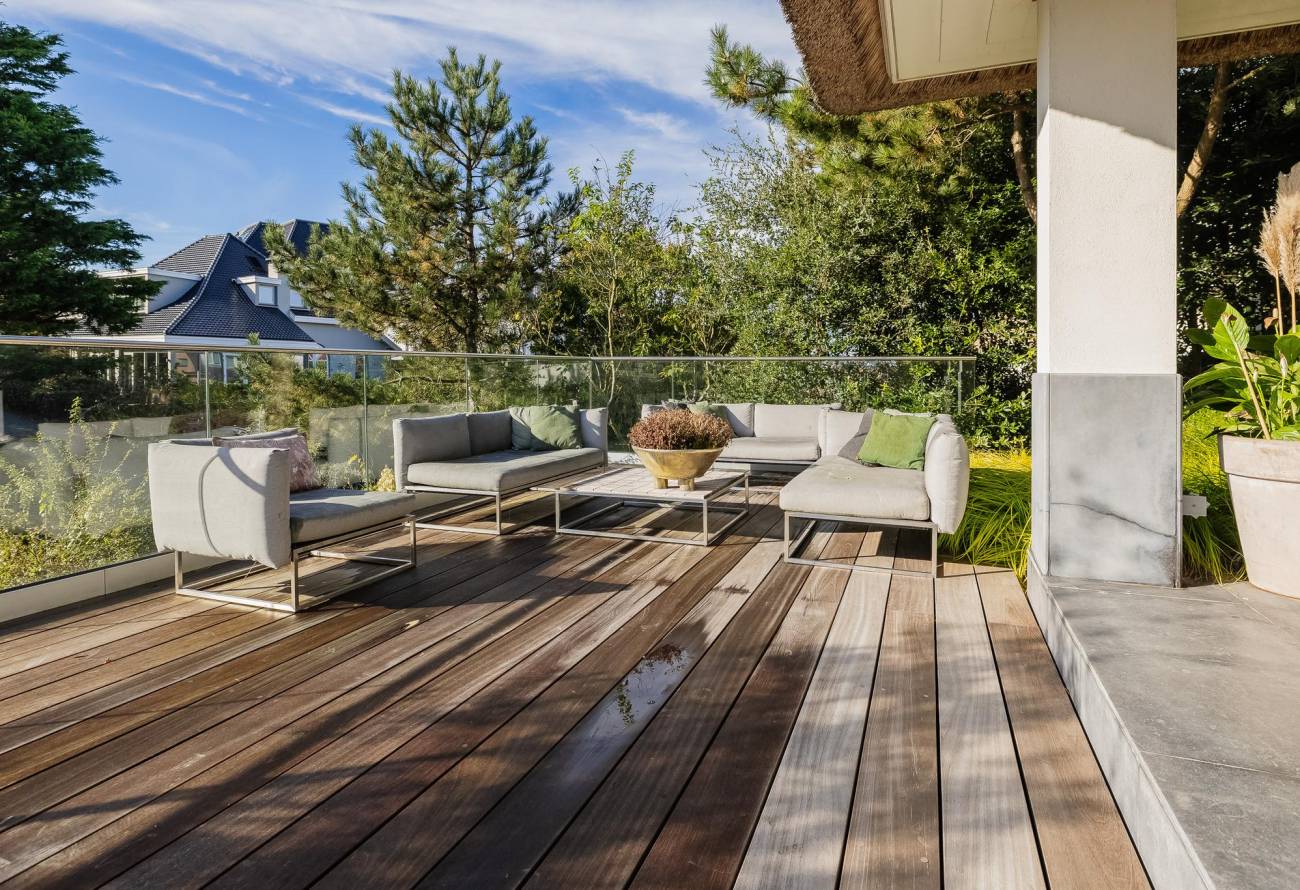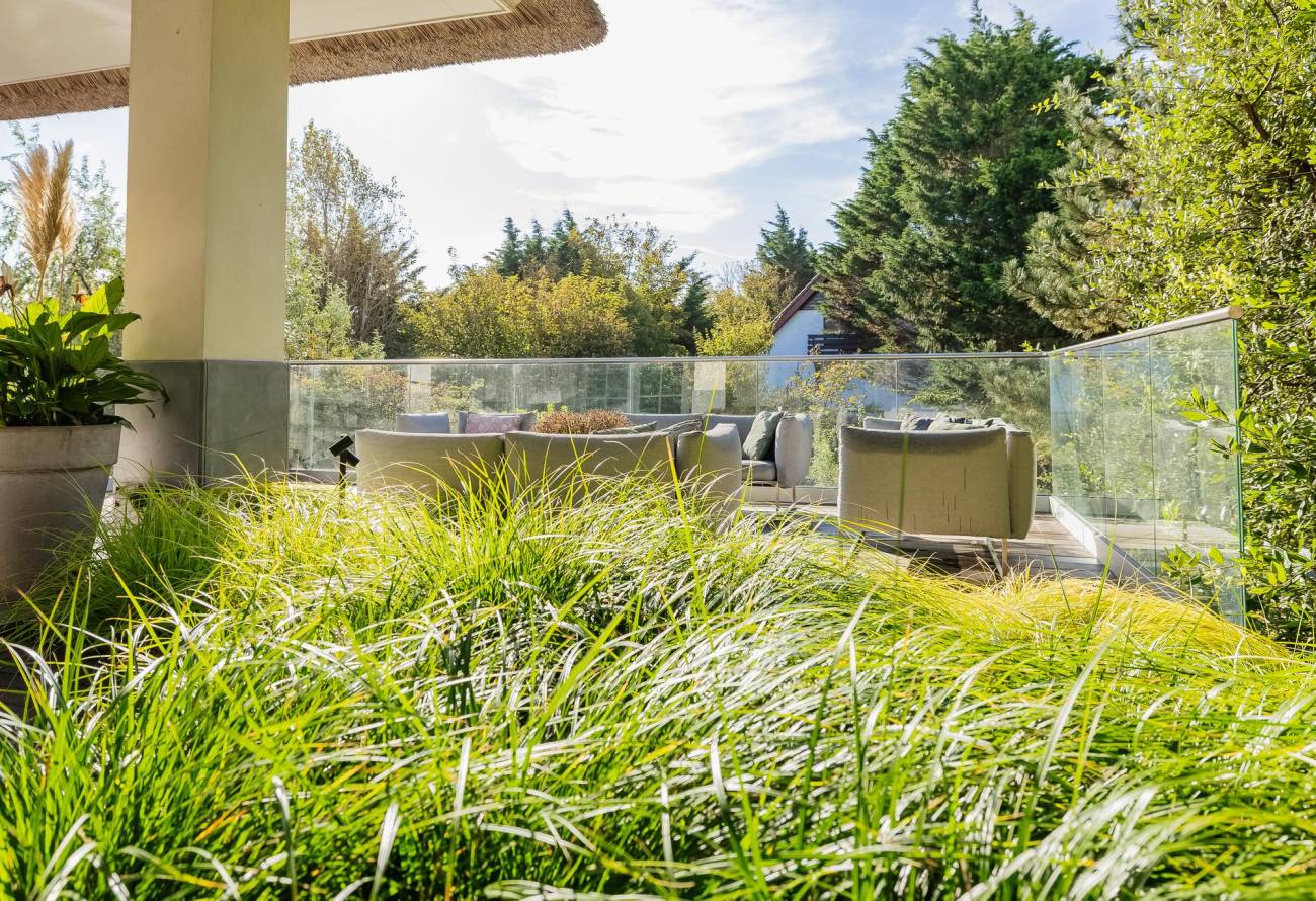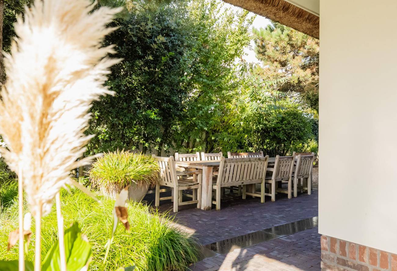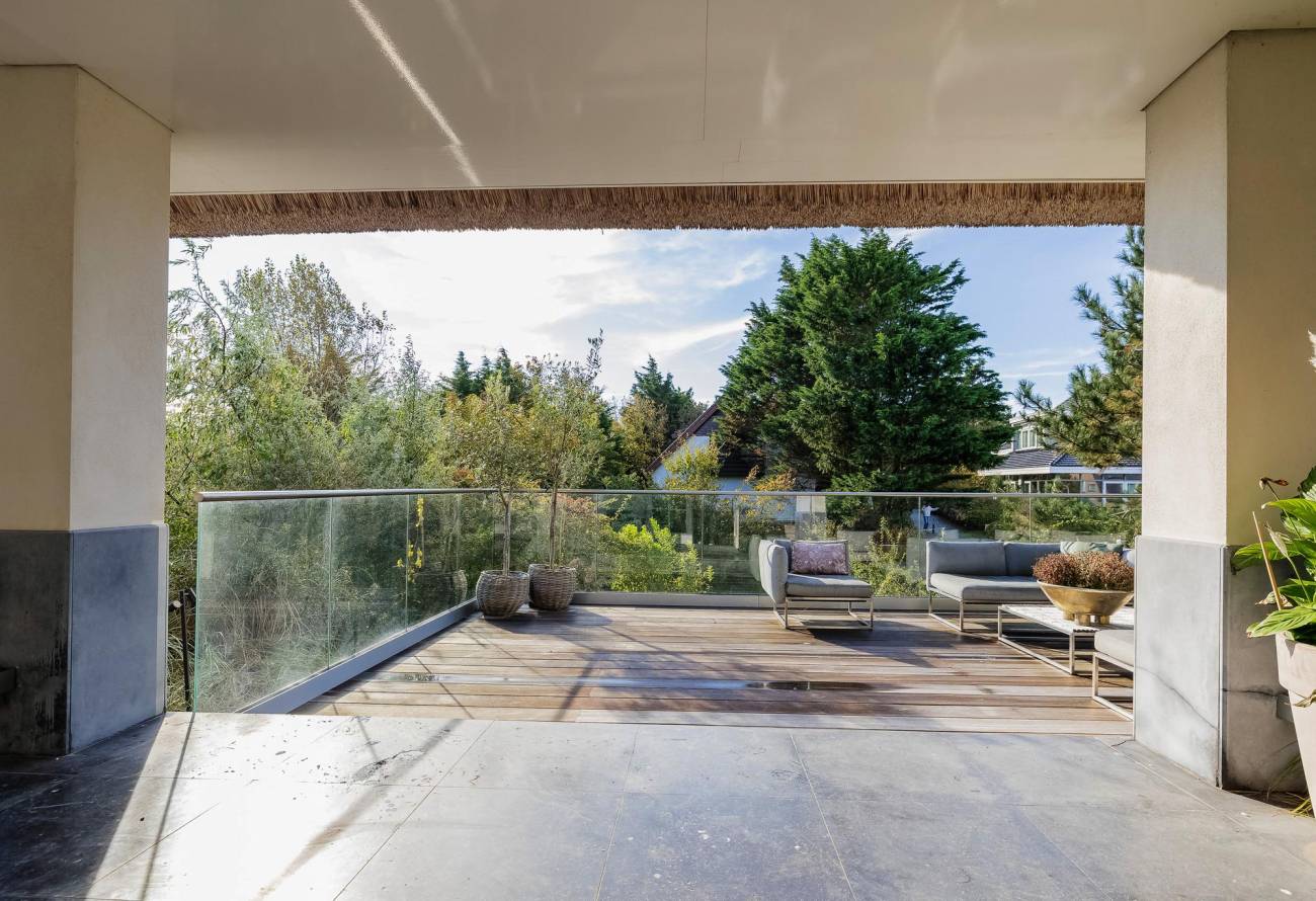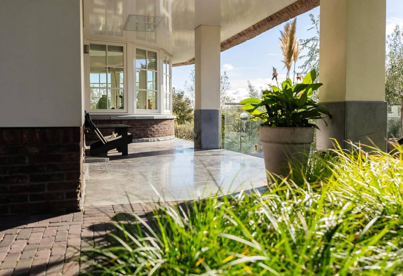 De grote tuin is onder architectuur aangelegd met diverse terrassen, een speelse trap, paden en vele struiken en bomen. Op de terrassen is het heerlijk genieten van de zon en de privacy.