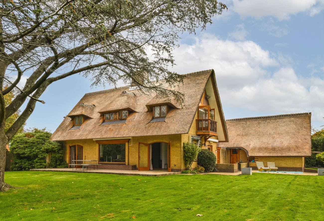 Bijzondere VRIJSTAANDE RIETGEDEKTE VILLA MET EEN VRIJSTAANDE GARAGE EN RUIM SOUTERRAIN.