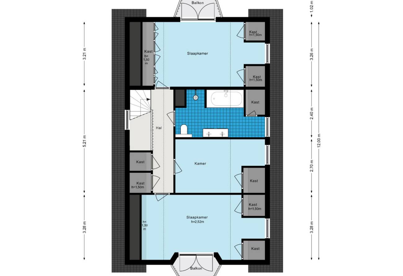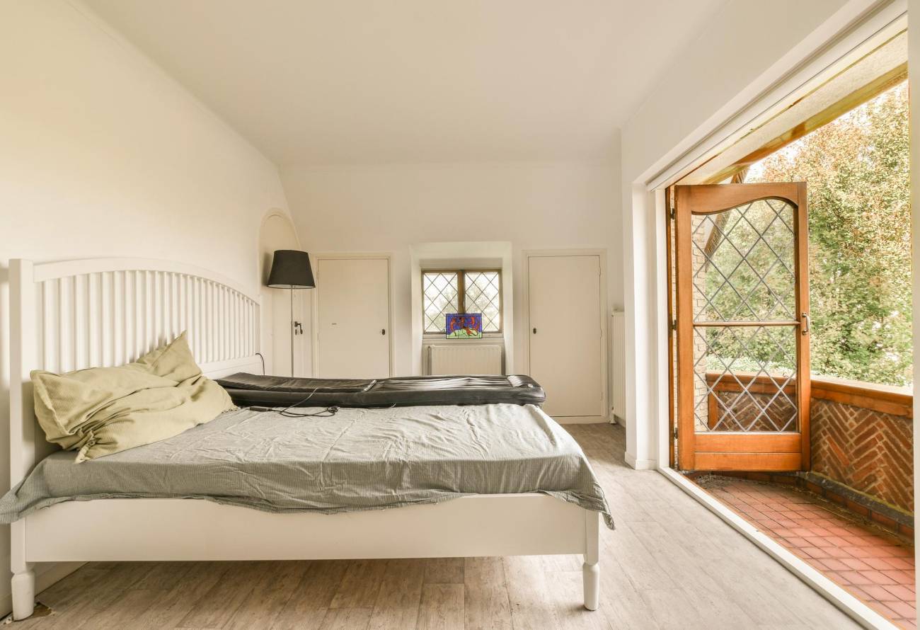 Aan de voorzijde is de 3e slaapkamer met balkon, dakkapel en inbouwkasten.