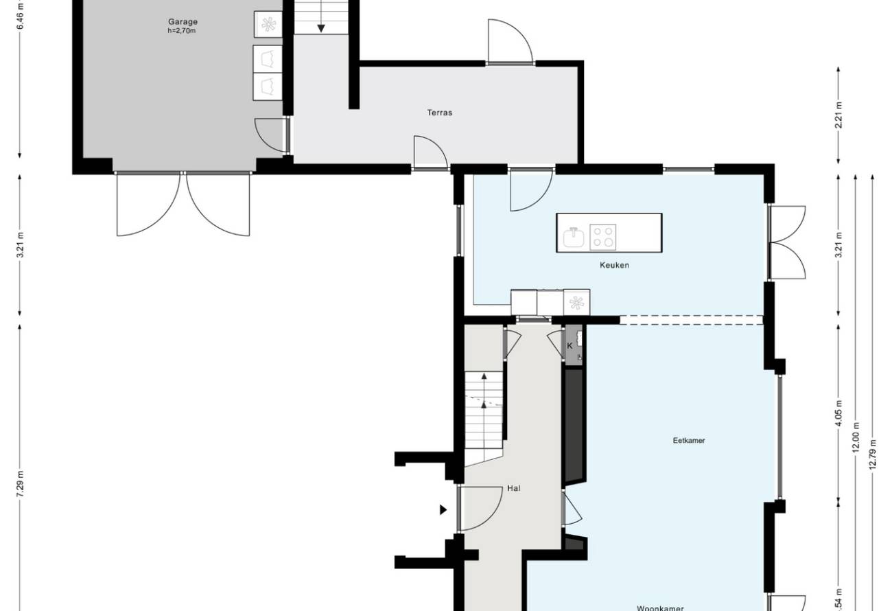 Zeer ruime garage met elektrisch bedienbare deuren en met loopdeur naar het terras. Een 2e cv ketel voor verwarming van de garage en het onderliggende souterrain.