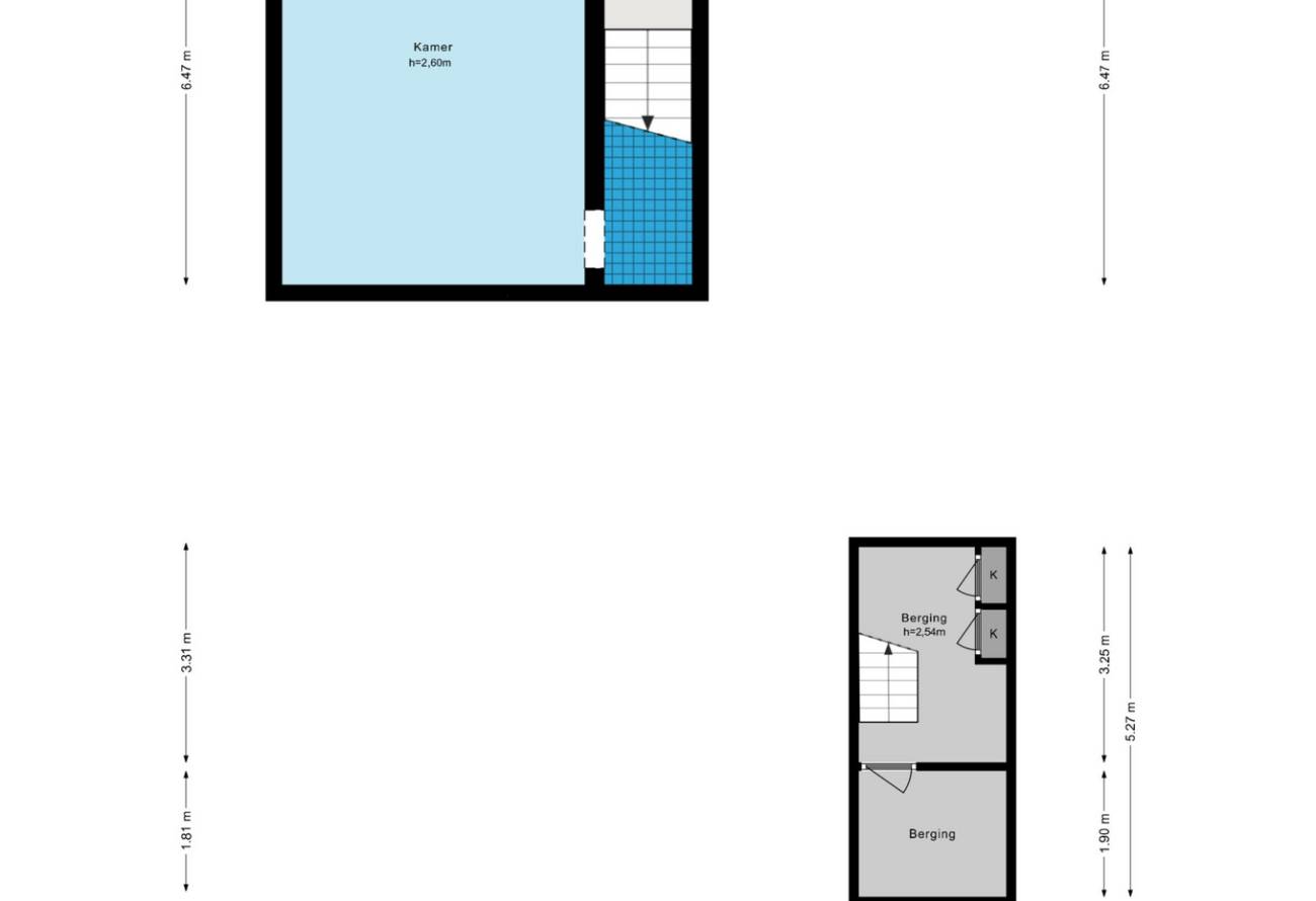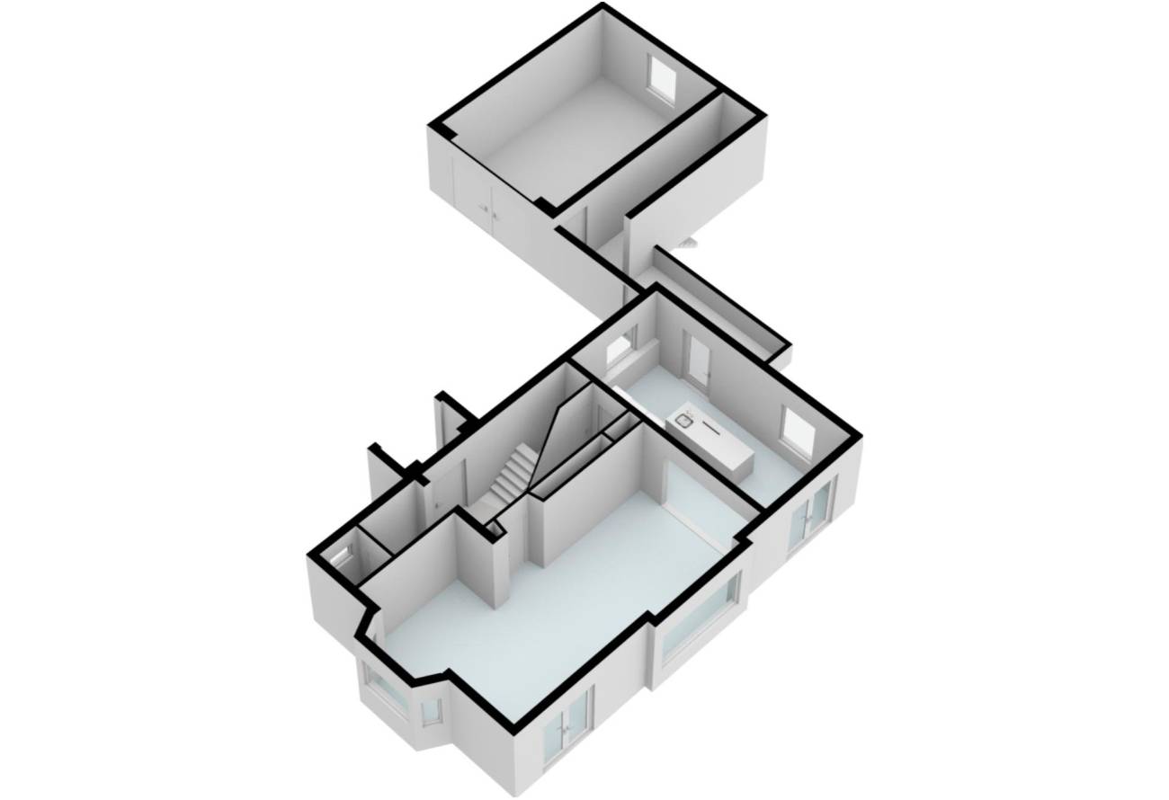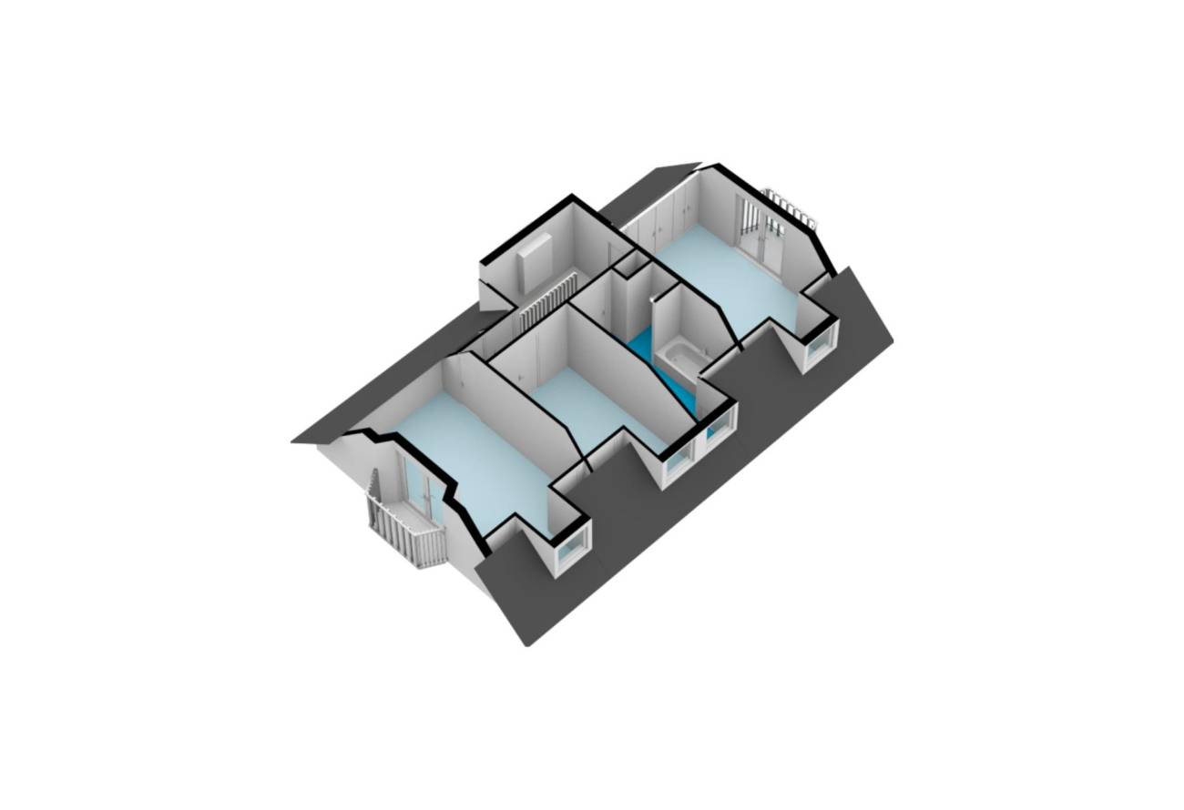 In de hoek is een extra bergruimte. Deze is goed te verbouwen tot bijvoorbeeld een badkamer.
