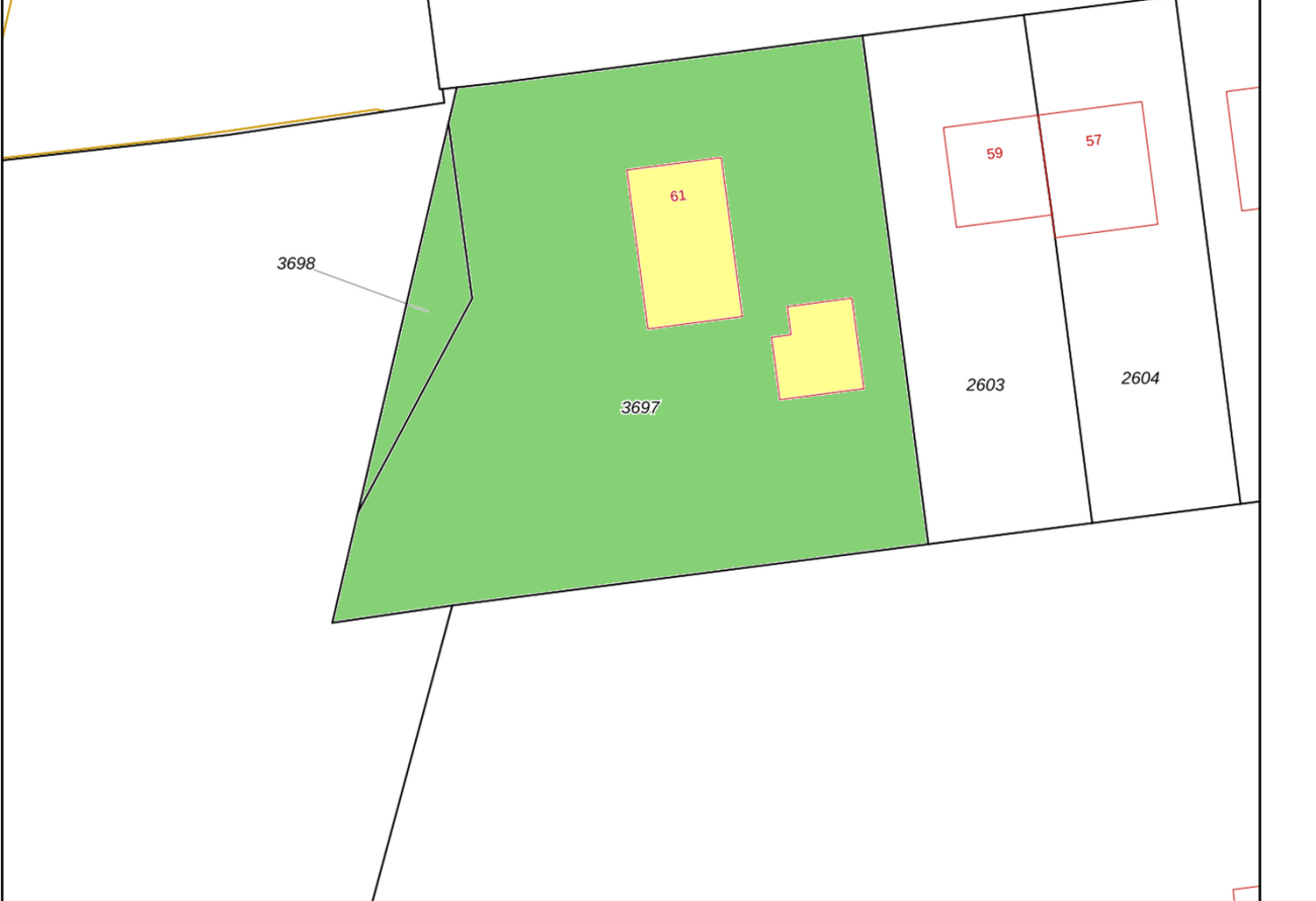 Bouwjaar 1950, perceeloppervlakte 1505m², woonoppervlakte woning 152m², inhoud 623m³, garage 29m², souterrain onder garage 31m², kelder onder woning 8m²,