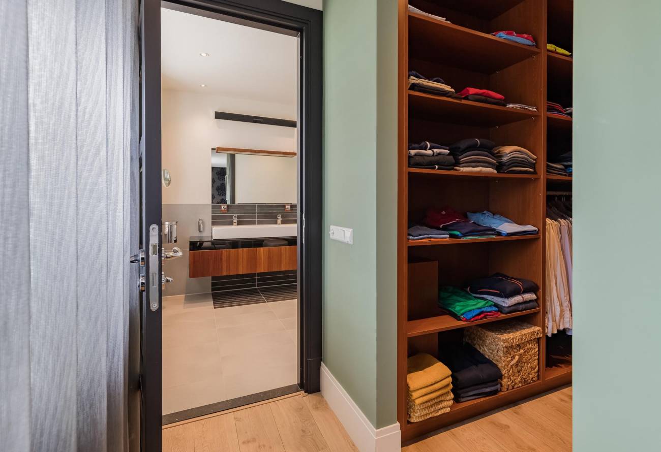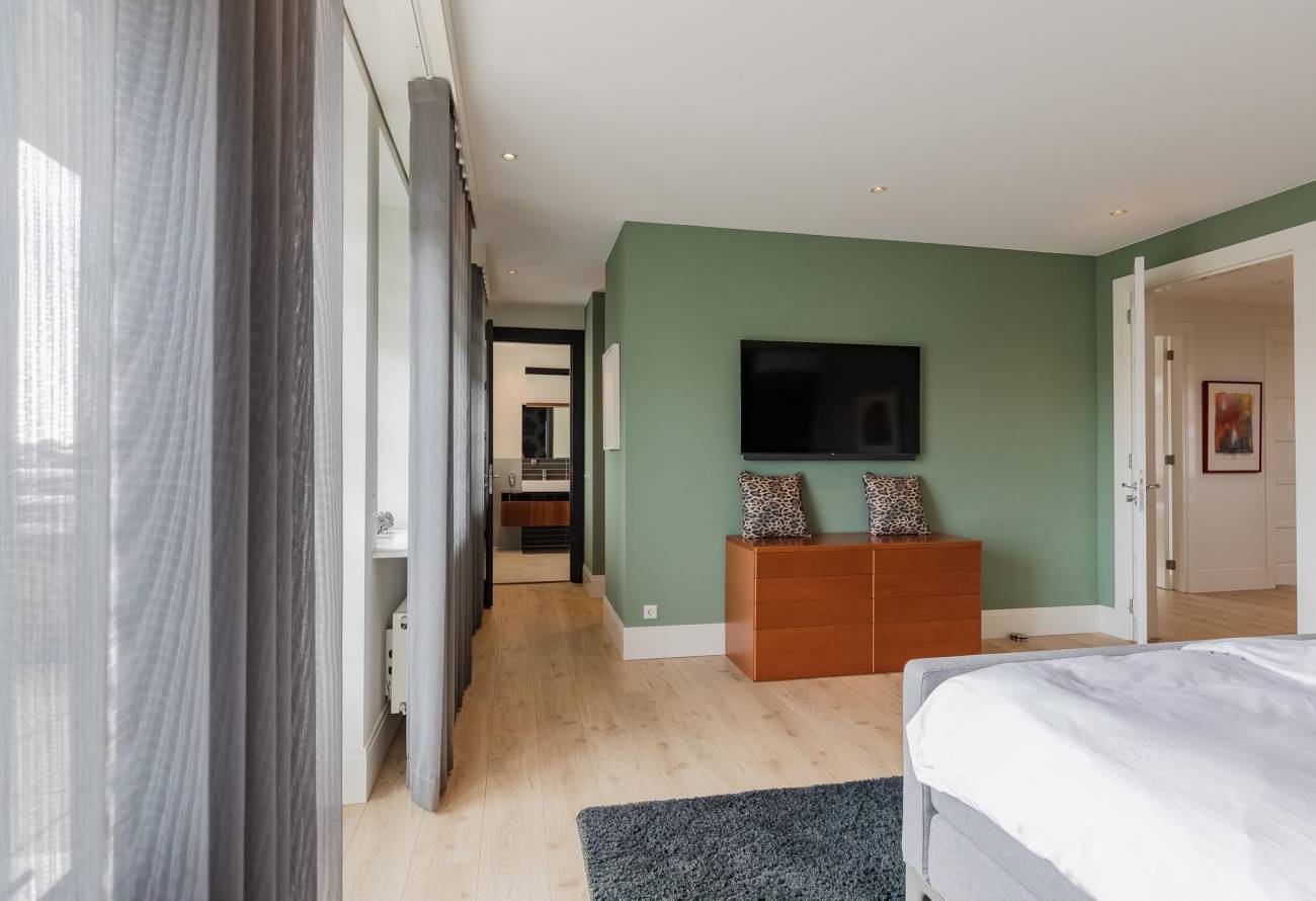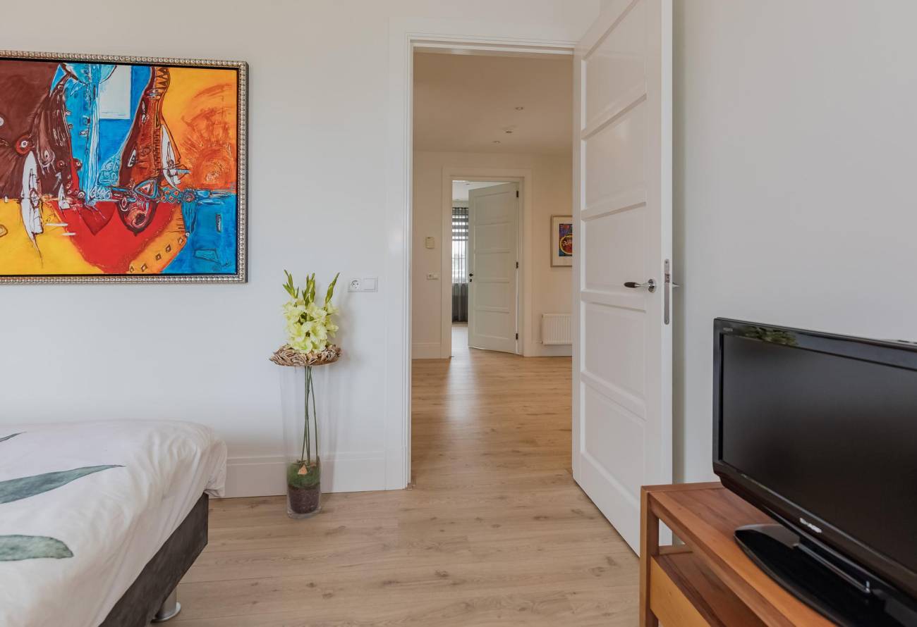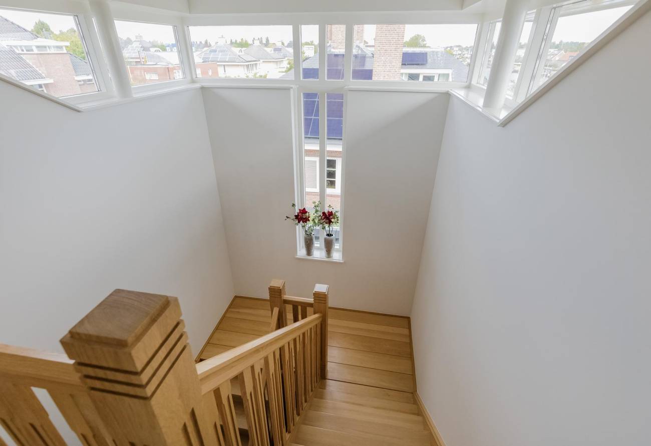 Vaste trap naar de overloop met toegang tot 2 badkamers, 4 slaapkamers waarvan 2 zeer riante slaapkamers beide met deur naar een balkonterras. De ouderslaapkamer, met balkonterras en met inloopkleedruimte is voorzien van airco en heeft een eigen badkamer. Deze luxe ingerichte badkamer heeft een inloopdouche, toilet en dubbele wastafel in meubel. De separate 2e doucheruimte heeft een badkamermeubel met een wastafel. Verder is er op de overloop een toiletruimte.