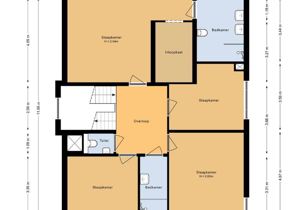 | Badkamers | 3 badkamers, 2 aparte toiletten |