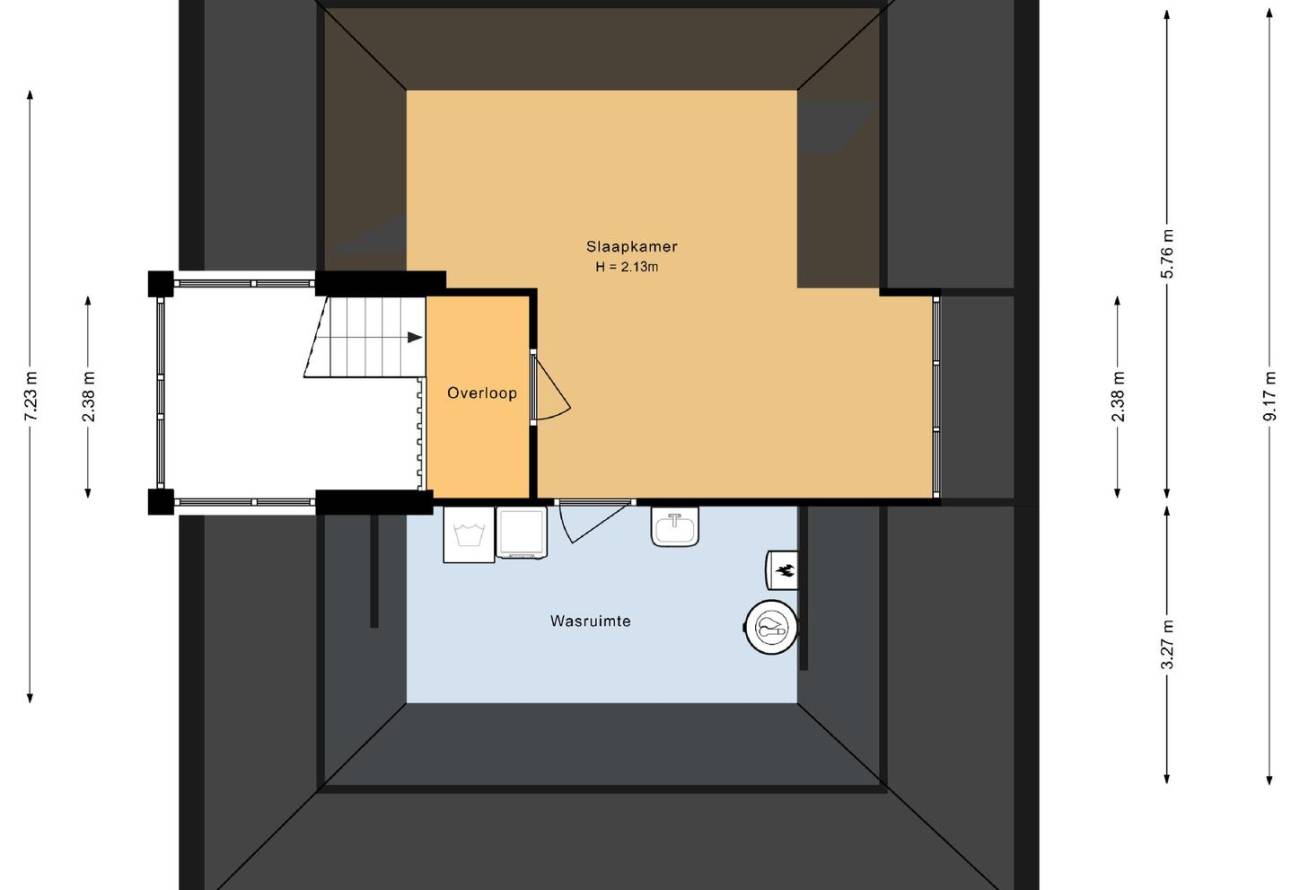 Via de trap naar de overloop en naar de ruime zolderslaapkamer met dakkapel. Verder is er een ruime wasruimte, met opstelling cv, en WTW.