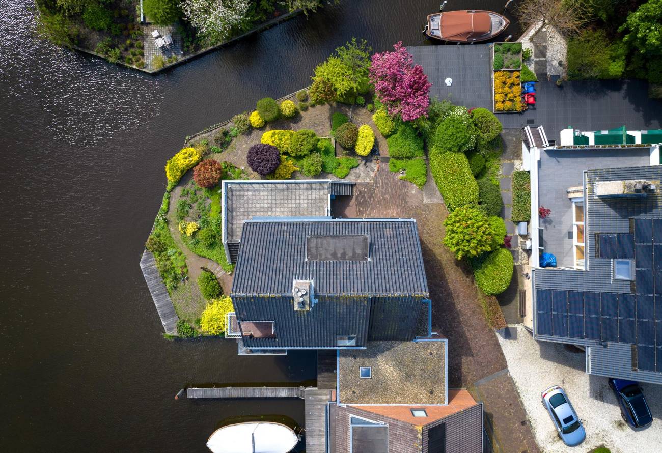 Aan de voorzijde van de woning is parkeergelegenheid voor 3 auto's. De tuin is aangelegd met sierpaden, bloemperken en terrassen en grenst aan drie zijden aan het water. Met de eigen insteekhaven ben je altijd verzekerd van een ligplaats aan huis. Je stapt dus zo in je boot en bent in een mum van tijd op het water en in de natuur. Behalve de insteekhaven is er in de tuin nog een extra aanlegsteiger plus een walkant waar ook aangelegd kan worden. Kortom, voldoende plaats voor boten.
