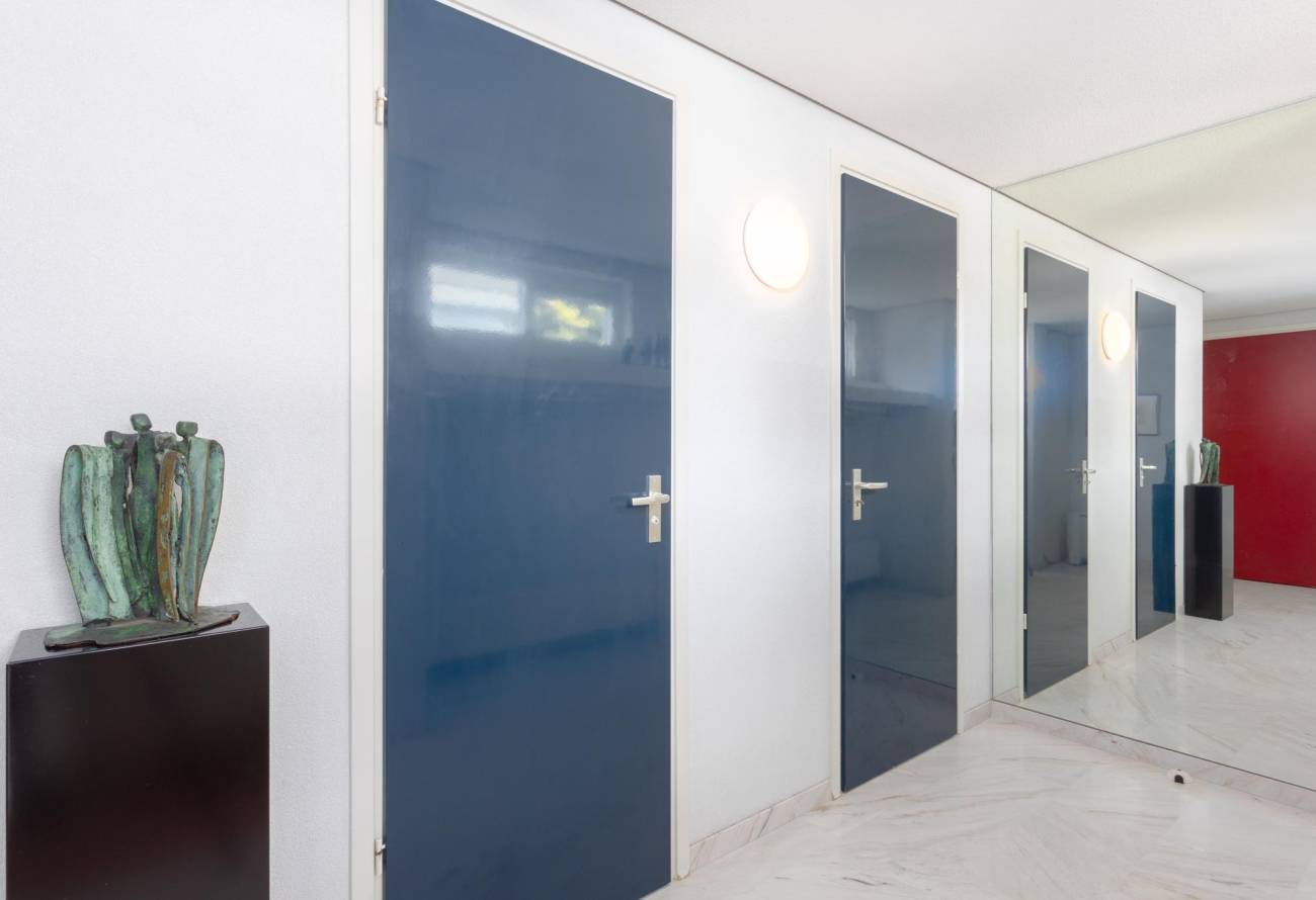 Grote hoofdslaapkamer met balkon, vele kledingkasten, een kleedgedeelte, een grote badkamer, een ruime overloop en zeer veel bergruimte. Ook vanuit de hoofdslaapkamer kun je genieten van het fantastische weidse uitzicht.
