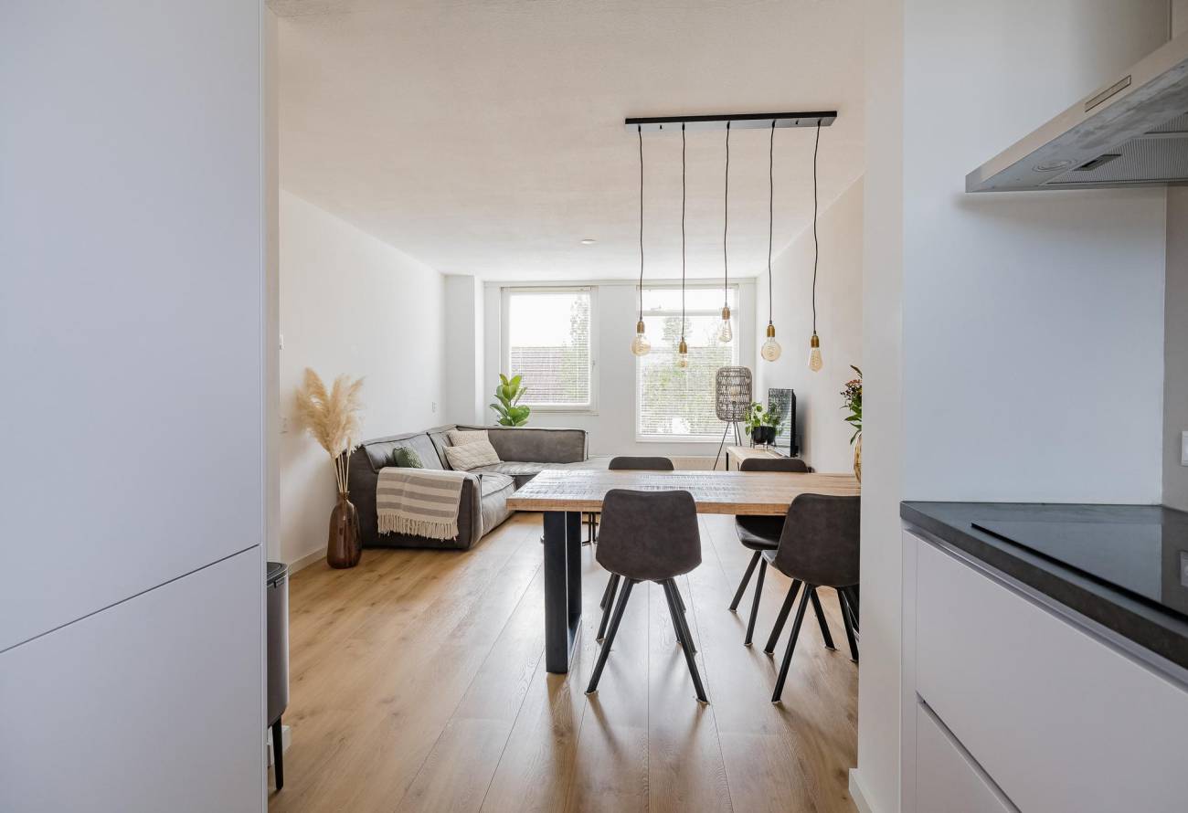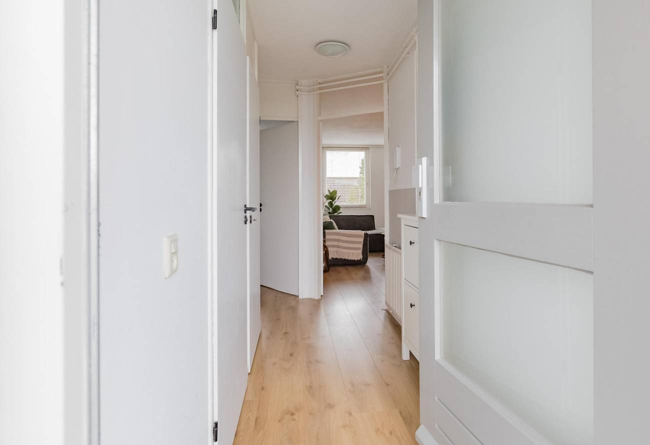 De entree van het appartement is gelegen op de 2e verdieping. Entree met garderobekast, toilet en meterkast. De woonkamer heeft veel lichtinval en een zeer nette laminaatvloer. De moderne openkeuken (2020) is voorzien van inbouwapparatuur, waaronder: koel-/vriescombinatie, vaatwasser, inductiekookplaat, afzuigkap en combi-oven. De hoofdslaapkamer is ca 12m² en biedt toegang tot het zonnige balkon.