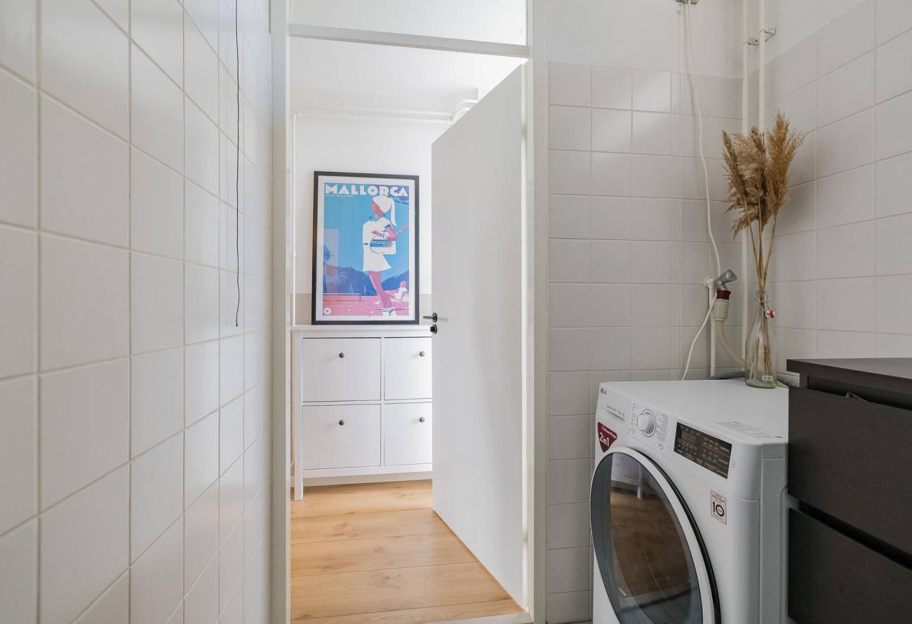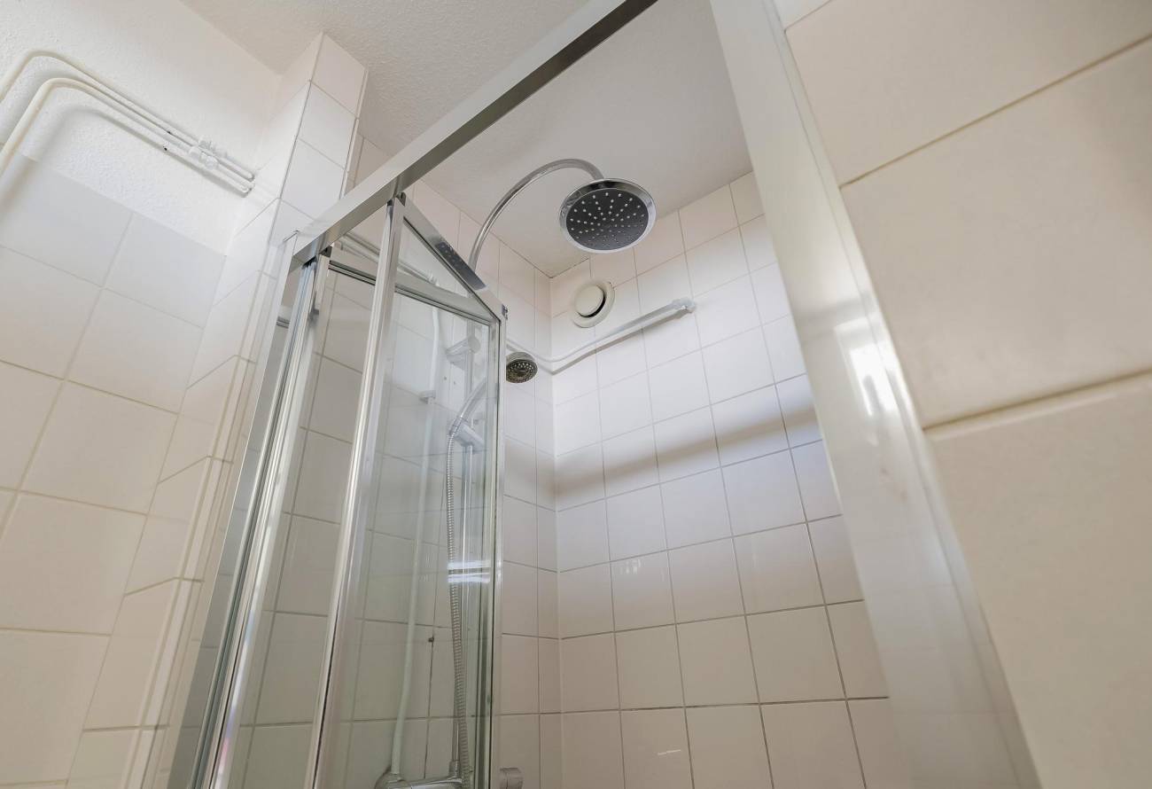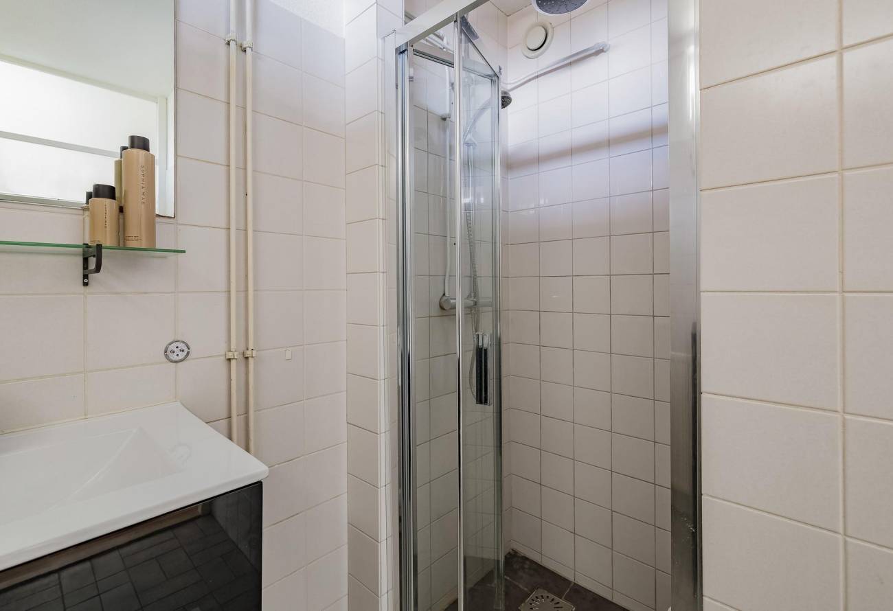 Het balkon is gelegen op het zuiden en hier kun je dus heerlijke genieten van de middag- en avondzon. De badkamer is geheel betegeld en beschikt over een regendouche en wastafel met meubel.