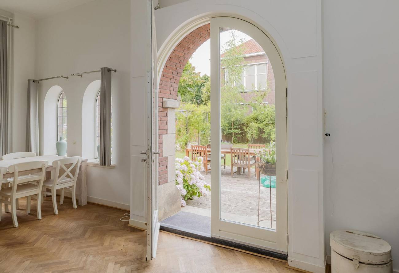 Bij de verbouwing zijn de originele details met veel liefde bewaard gebleven. Je vindt hier nog steeds de toren, bijzondere glas-in-loodramen, dikke muren met grote raampartijen, hoge plafonds, granitovloeren en kenmerkende boogpartijen. Alles ademt sfeer en historie, maar met het comfort van nu.