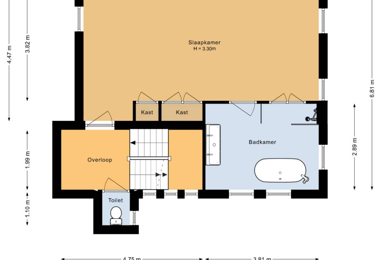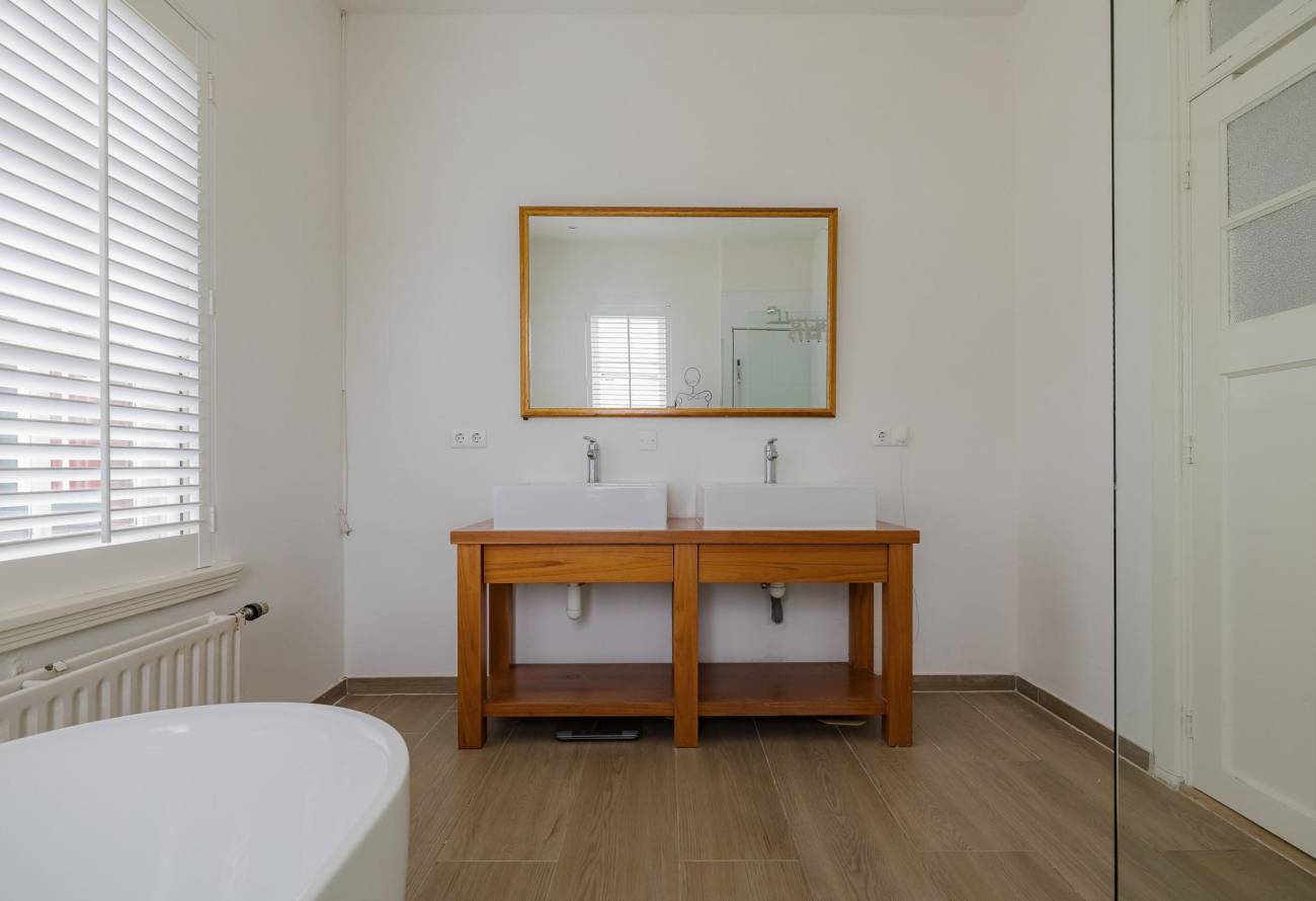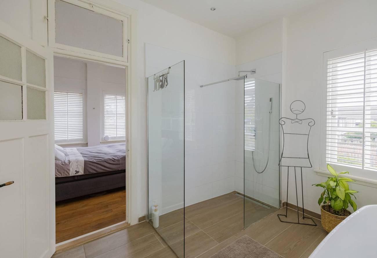 Op de overloop kom je in de zeer royale lichte hoofdslaapkamer met ingebouwde kasten met toegang naar eigen badkamer. De moderne badkamer heeft een vrijstaand ligbad, inloopdouche en een wastafelmeubel. Op de overloop is een tweede toilet.