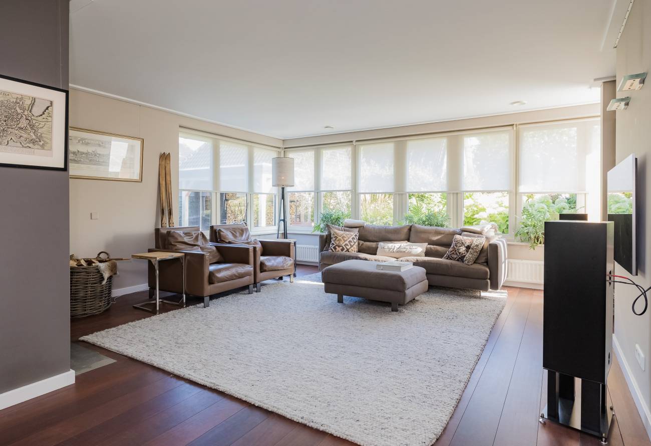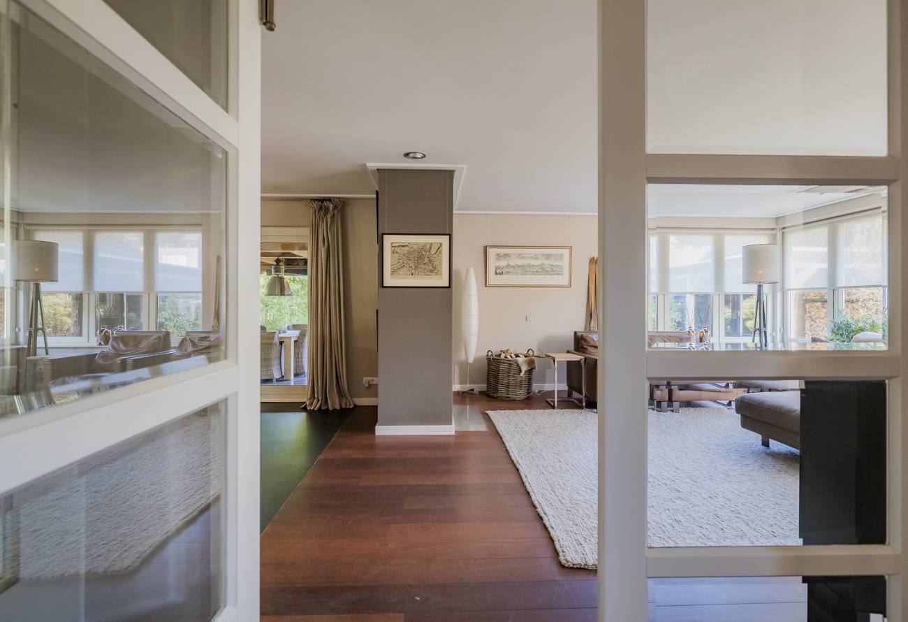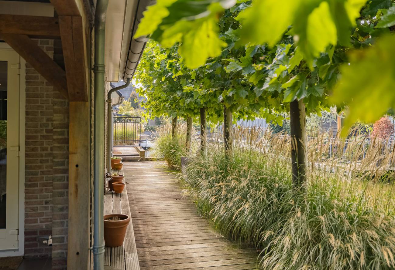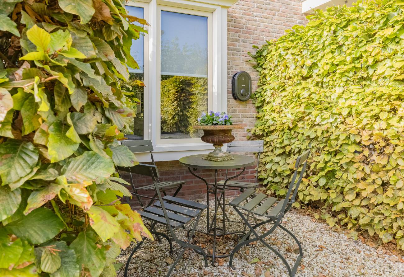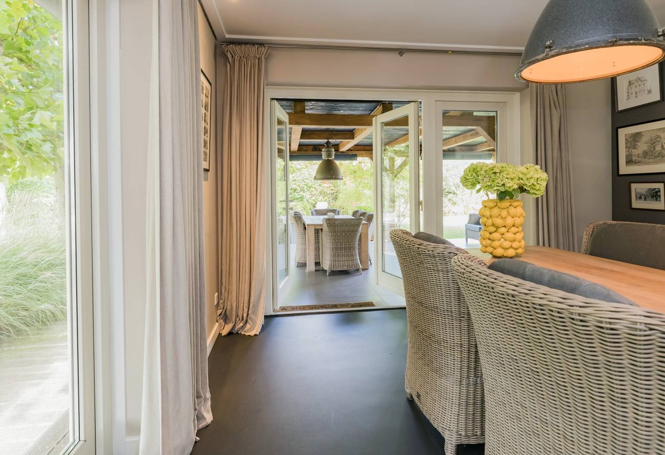 Rondom de villa ligt een fraai aangelegde tuin met volop privacy, een grote rozenboog, een tuinhuis met overkapping én een prachtige eikenhouten veranda. Hier geniet je het hele jaar door van het buitenleven; een fraaie uitbreiding van de woonkamer.