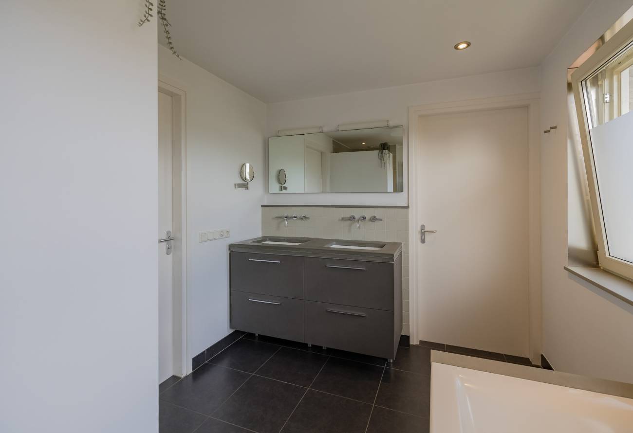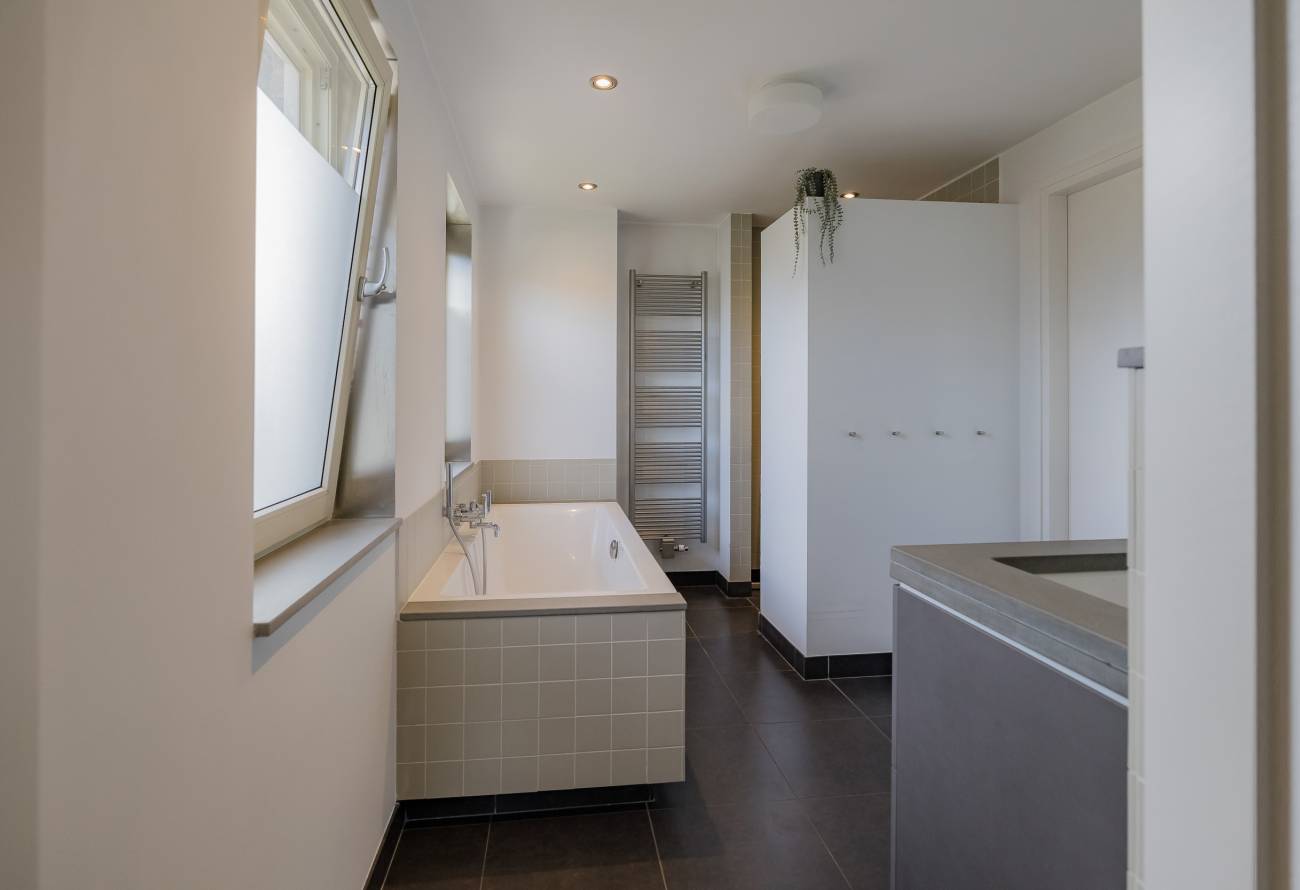 De badkamer is luxe uitgevoerd met een ligbad, inloopdouche en dubbele wastafel met meubel. Op de overloop is een aparte toiletruimte.