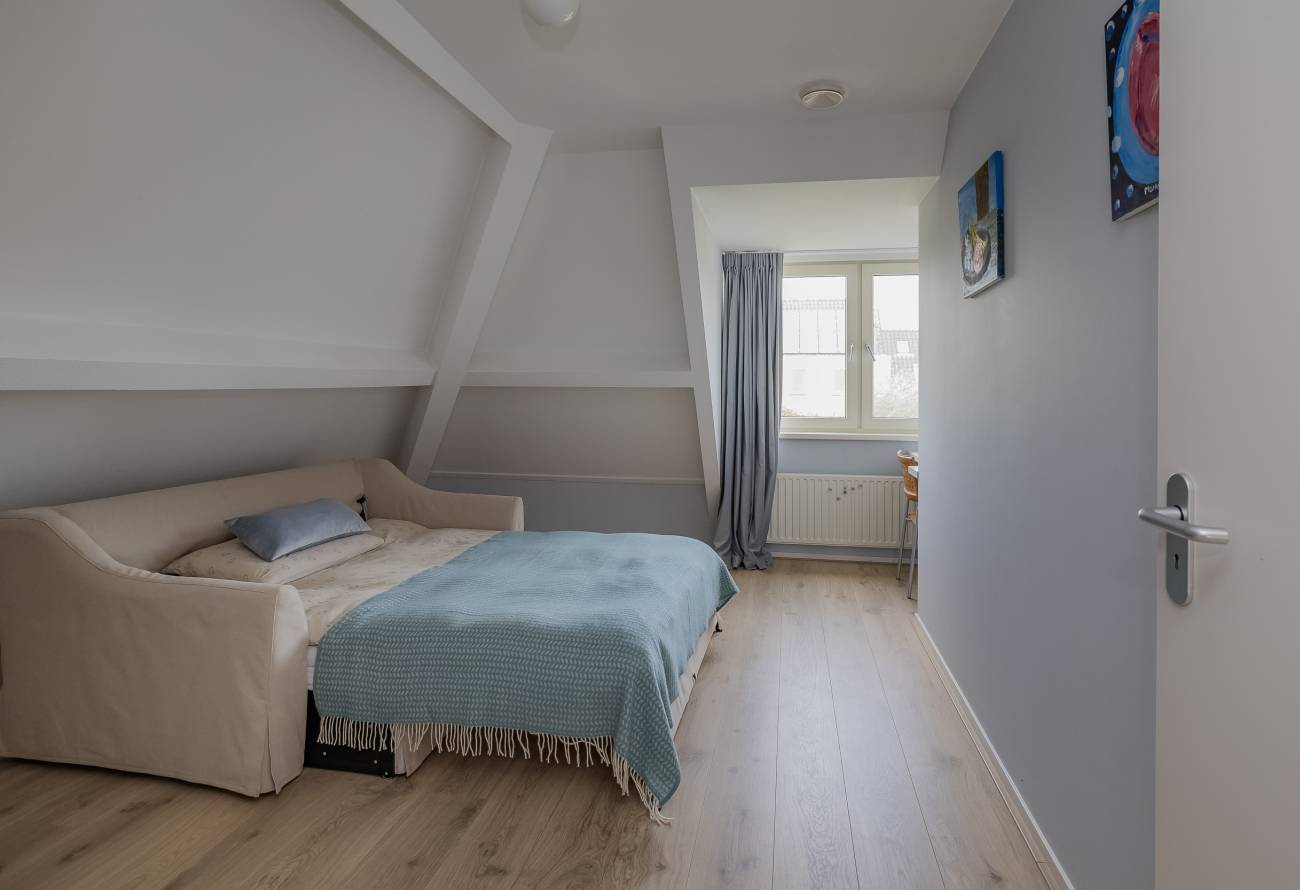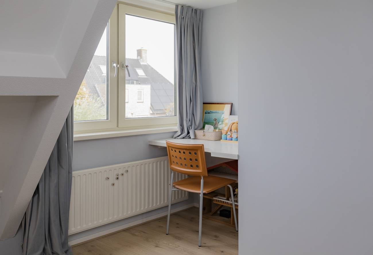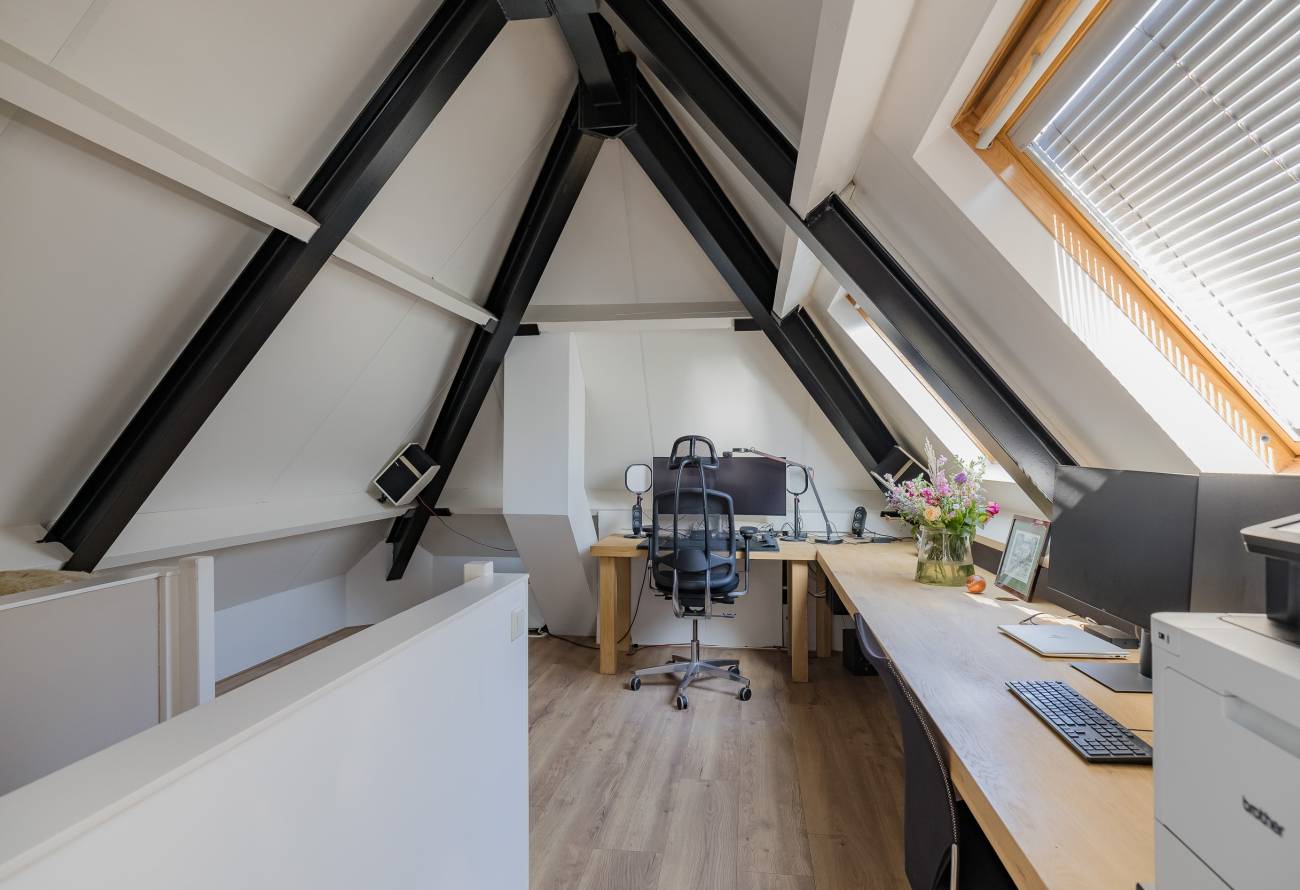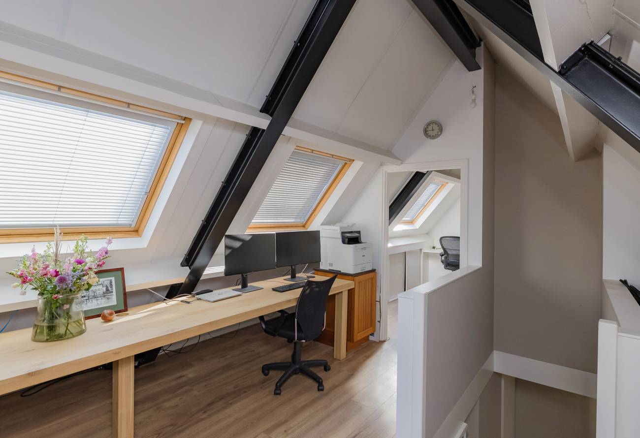 Een vaste trap brengt je naar de tweede verdieping met nog eens twee (slaap)kamers, die momenteel in gebruik zijn als kantoorruimte. Vanuit de achterkamer heb je toegang tot de stookruimte met cv-installatie (2016) en het WTW-ventilatiesysteem.