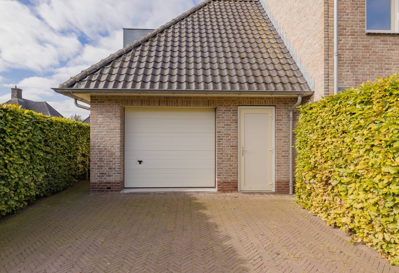 Op de oprit, voor de garage, is er plek om twee auto’s te parkeren.
