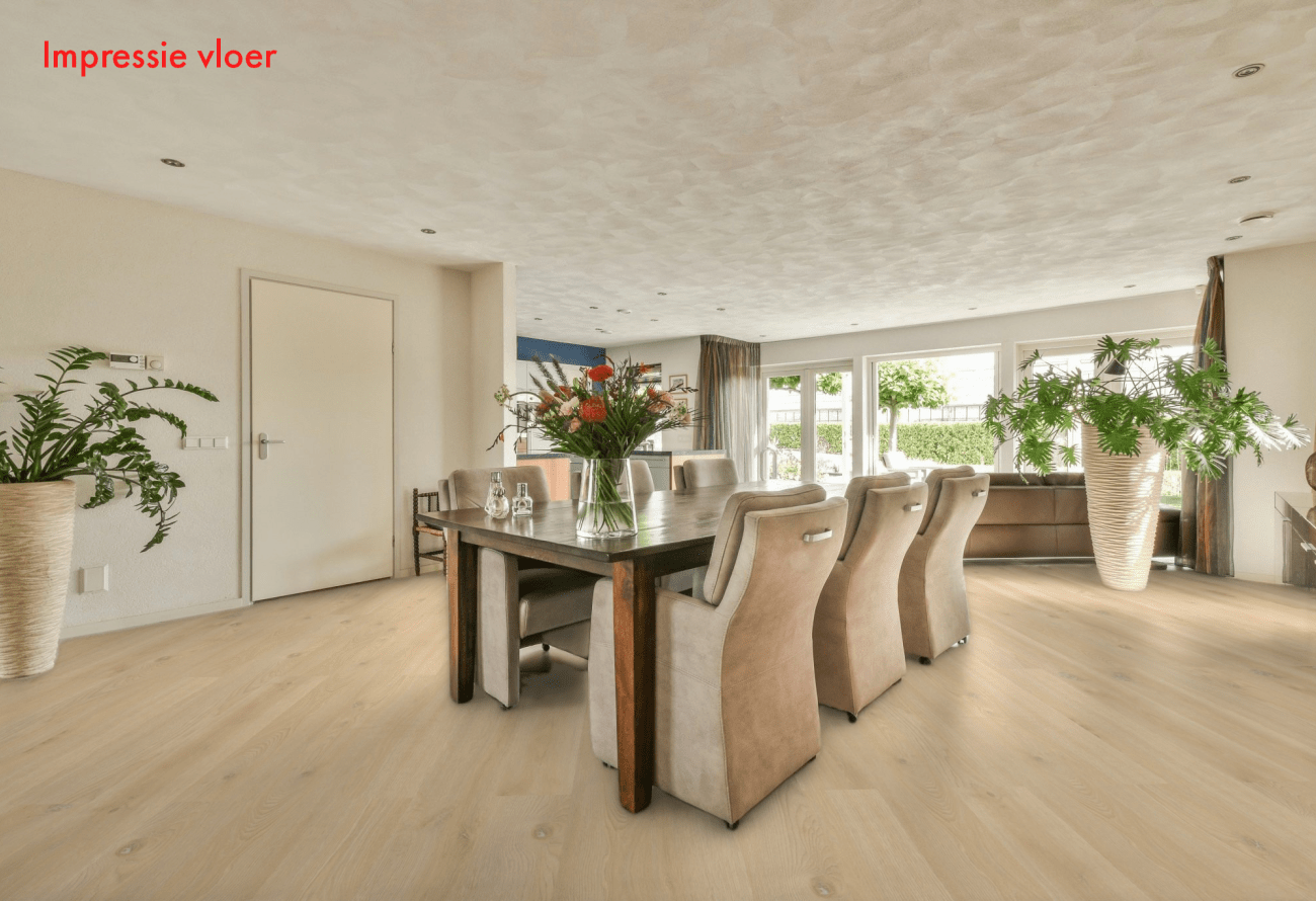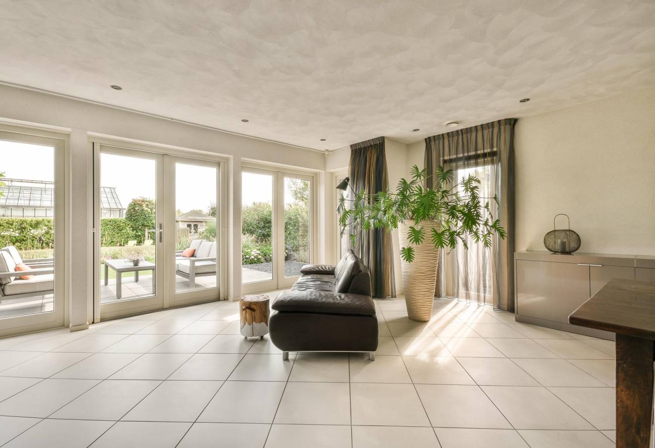 De gehele begane grond is voorzien van een off white tegelvloer met vloerverwarming, fijn spachtelputz wanden en geschuurde plafonds.