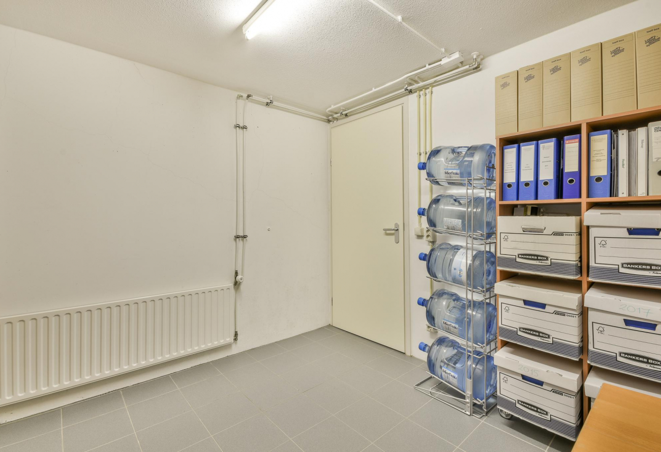 Eigen entree aan voorzijde van de villa met toegangsdeur, hal, meterkast, toiletruimte met wandcloset en fontein, zeer groot (kantoor)vertrek met pantry, deur naar tuin en toegang tot de geheel betegelde kelder bestaande uit twee vertrekken.