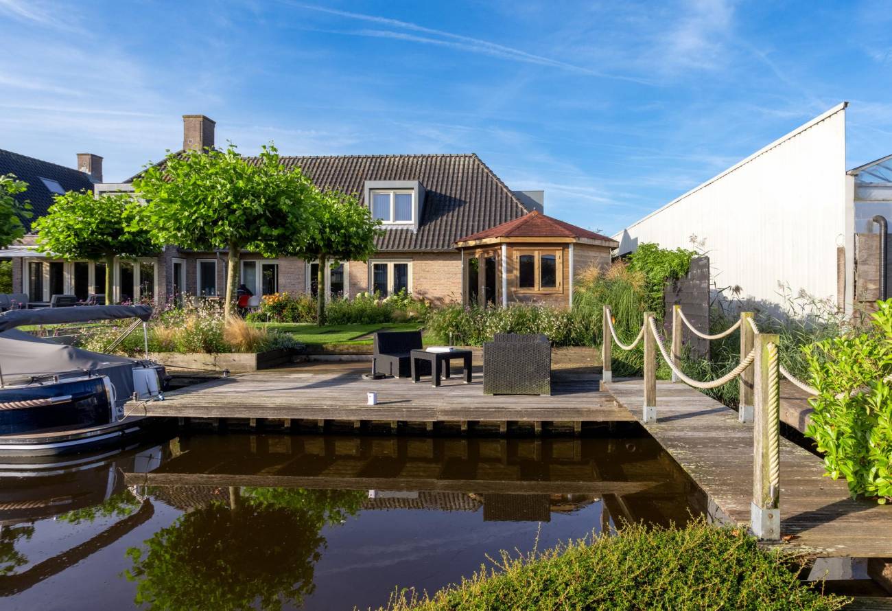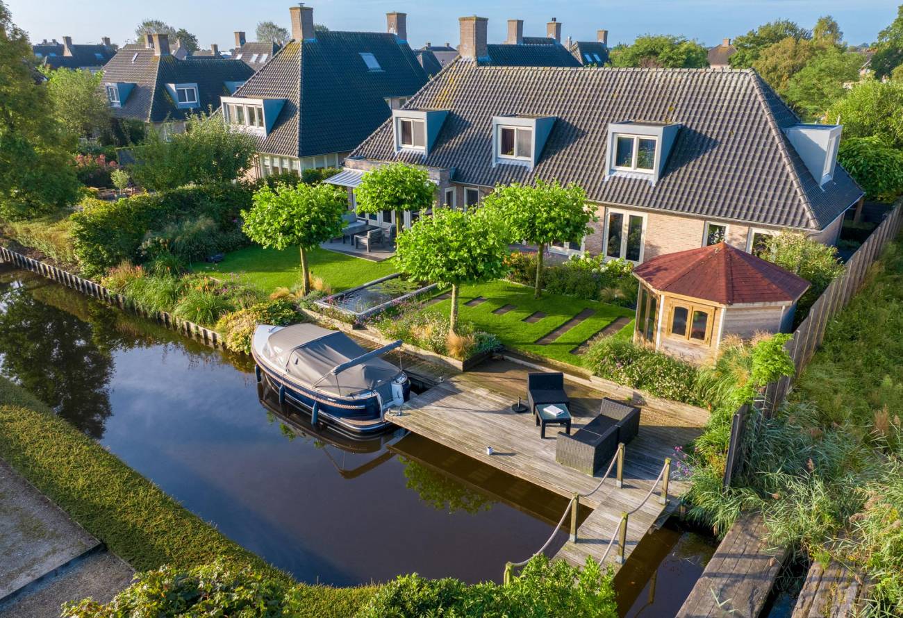 Deze uitstekend verzorgde vrijstaande villa heeft deze aanlegsteiger, maar ook een inpandige garage en mogelijkheden voor een groot kantoor-/praktijk of werkruimte aan huis.