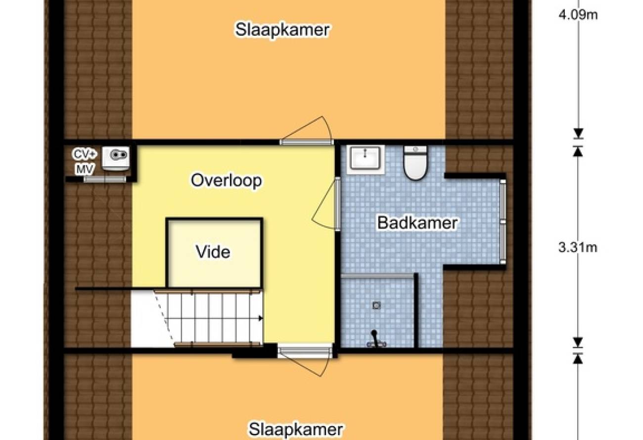 | Badkamers | 2 badkamers, 1 aparte toiletten |