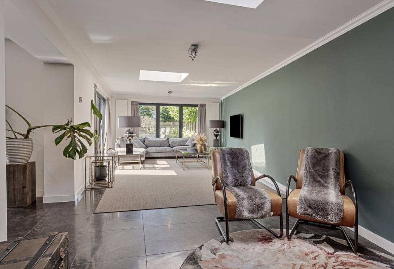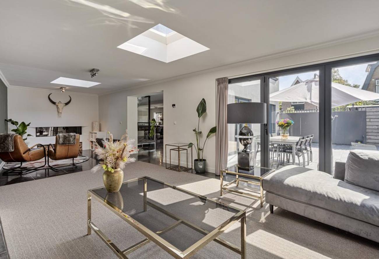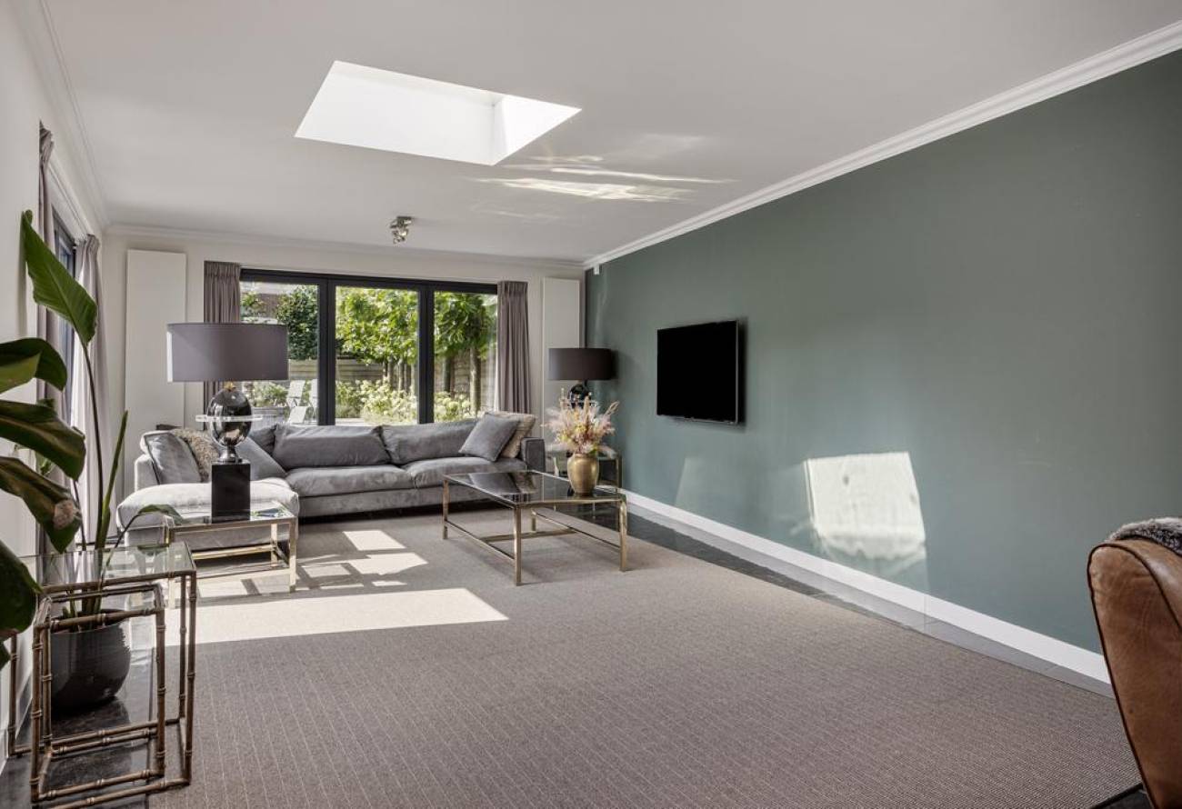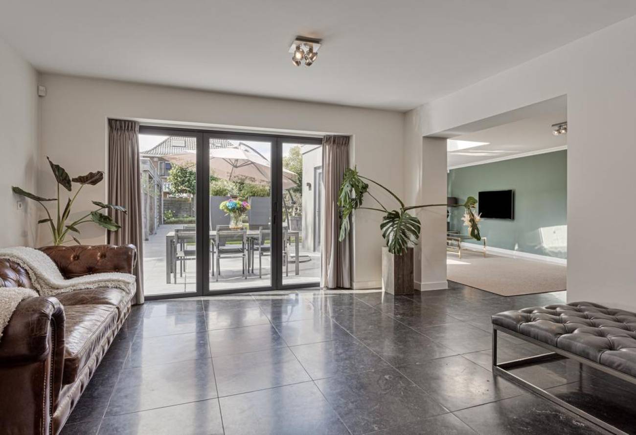 Extra leuk detail hier zijn de 2 lichtstraten die het natuurlijke licht perfect de woonkamer laten binnenstromen. Zowel de woonkeuken als de living bieden directe toegang tot het terras van de tuin.