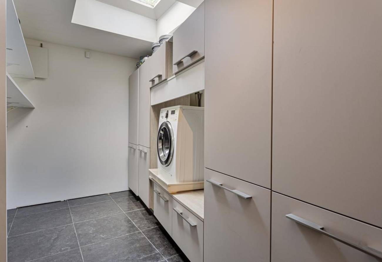 Op de begane grond, die is voorzien van tegels met vloerverwarming, bevindt zich tevens een royale berging met wasruimte en toiletruimte.