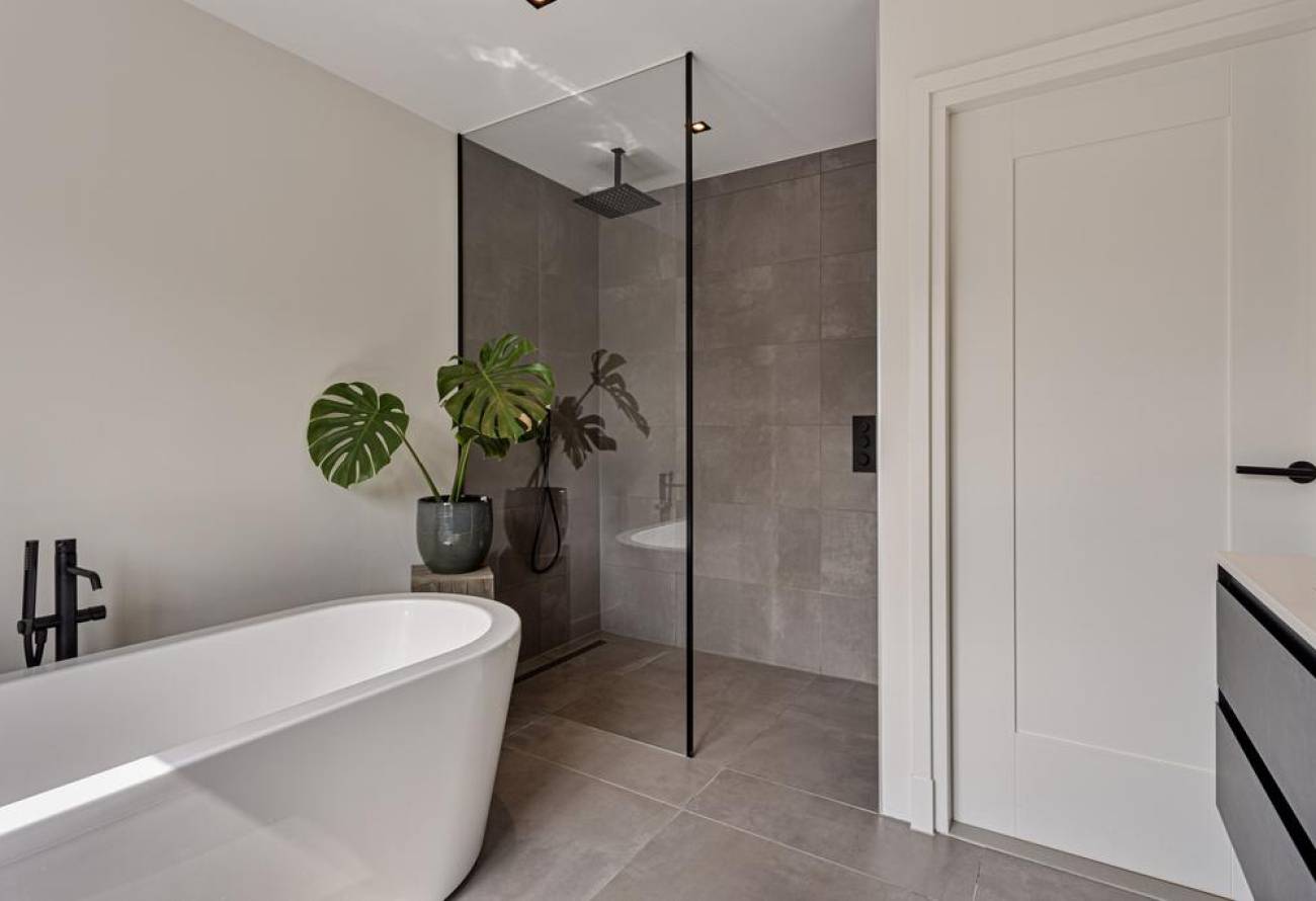 • Moderne badkamer met ligbad en inloopdouche