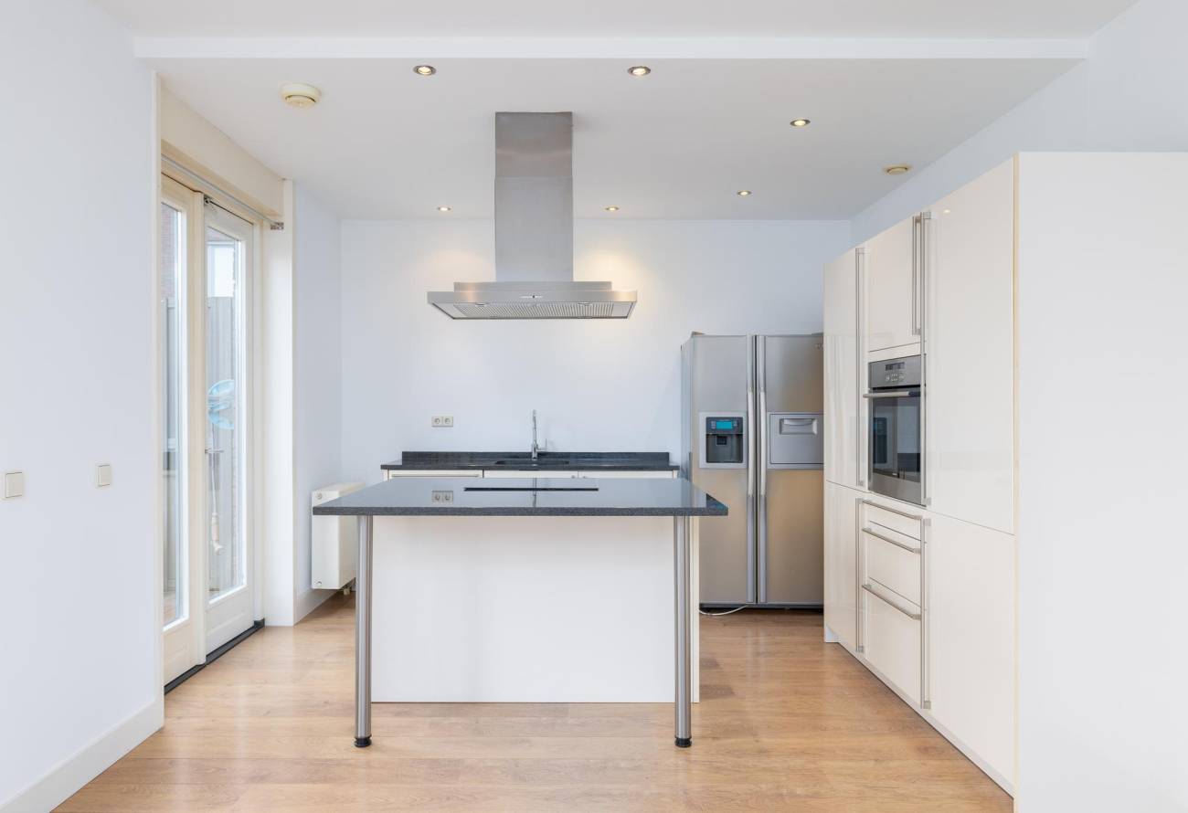 Deze woonkeuken wordt overspoeld met natuurlijk licht en biedt via 2 x dubbele deuren toegang tot een royaal dakterras van 52m² op het zuiden.