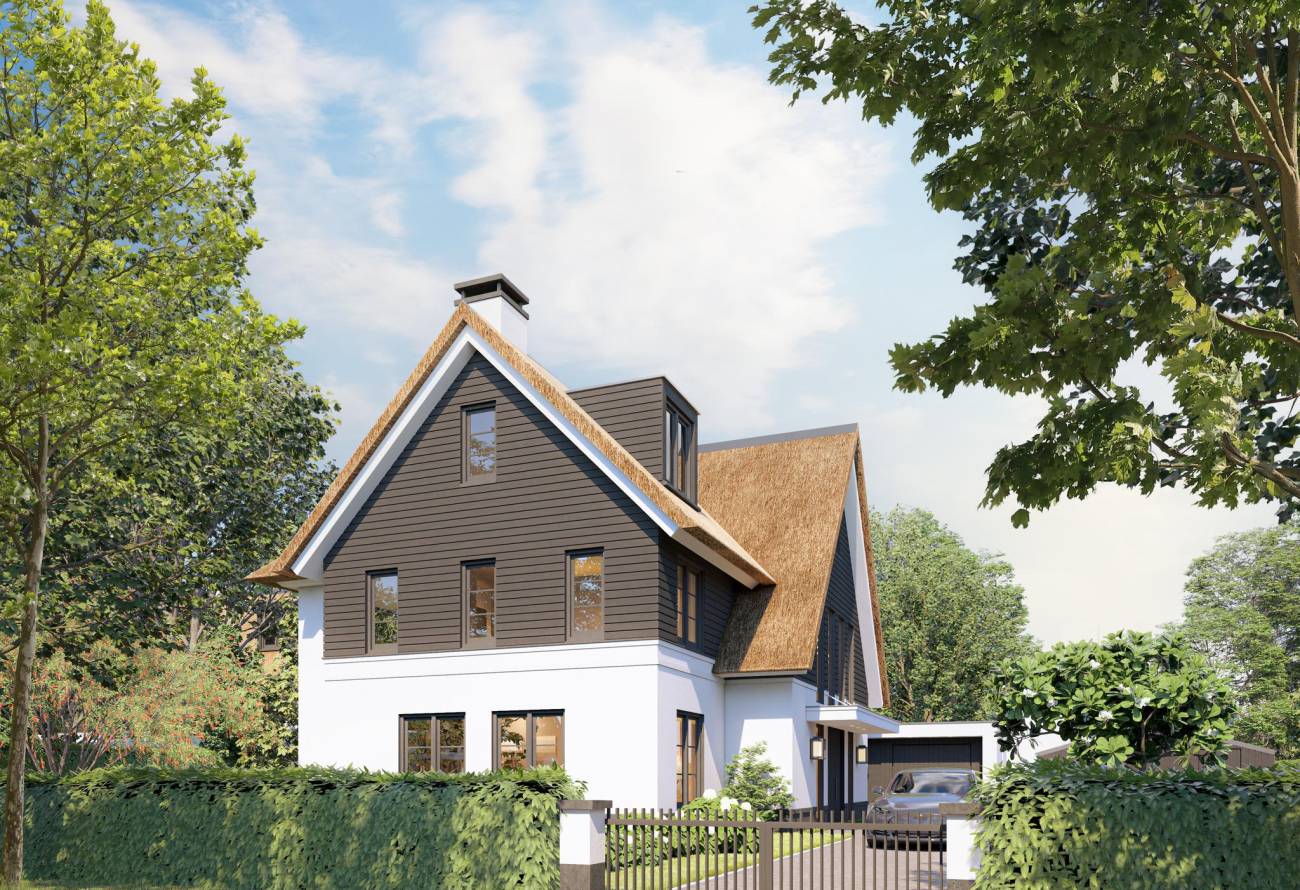 Met een prachtige wit gestucte gevel met op de eerste verdieping een fraaie antraciete gevelband/sidings en sfeervolle rieten kap zijn dit echte droomvilla’s in het groen van Ganzeneiland. De luxe entree leidt je naar een royale woonkamer en een ruime keuken, volledig in te richten naar eigen smaak. Een kookeiland, wijnkoeling of bar met eetgelegenheid creëren de perfecte ruimte voor ontspanning.