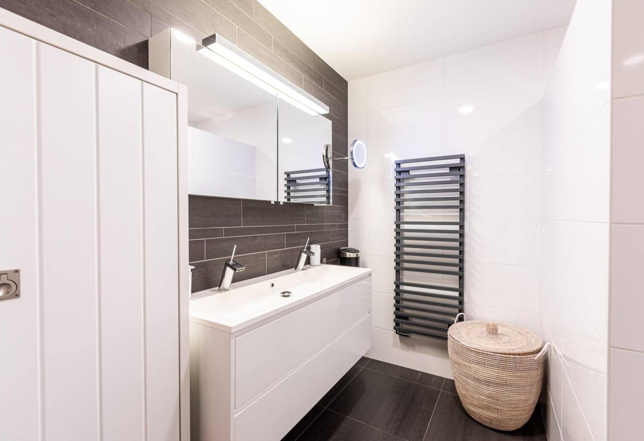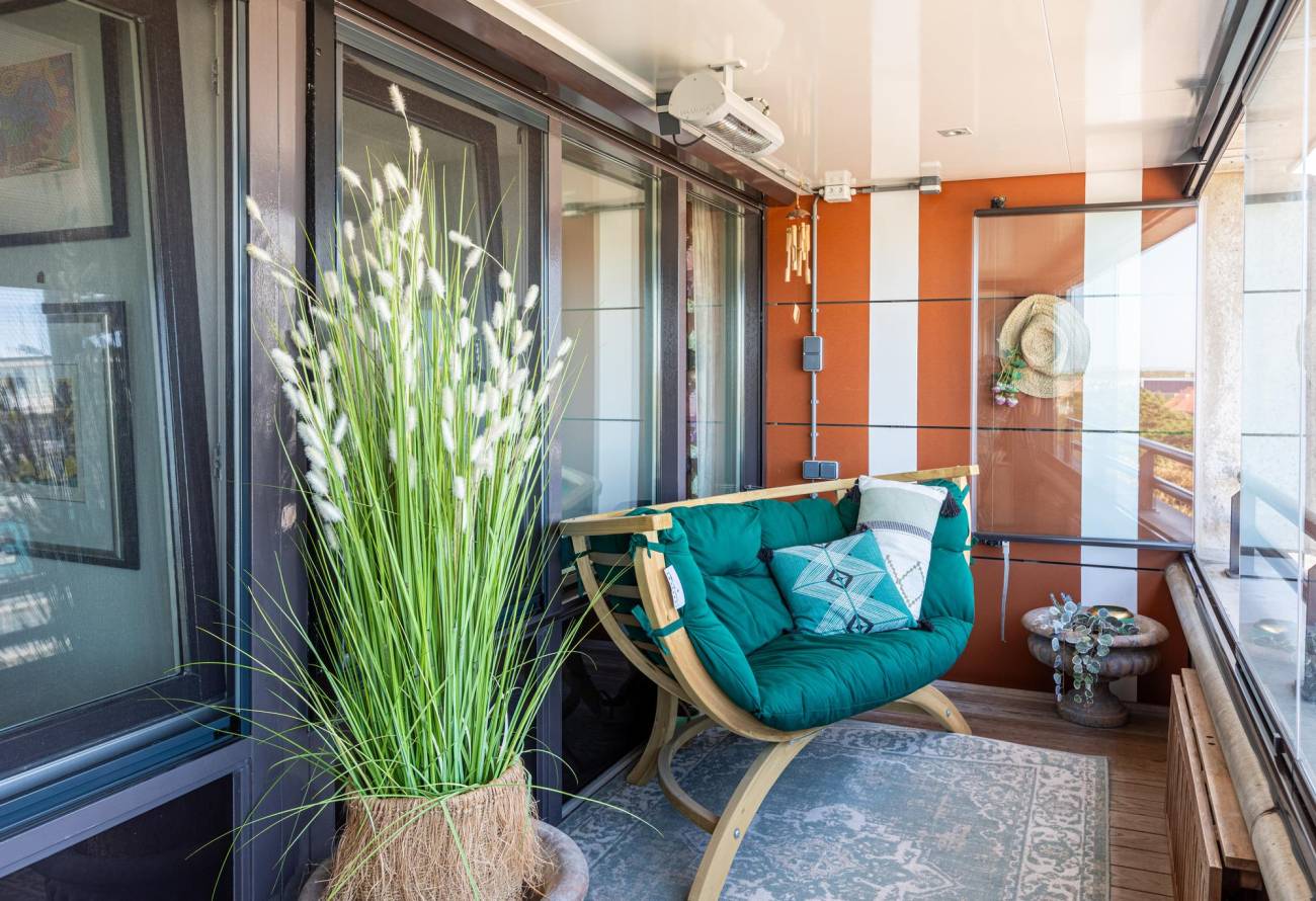Het balkon is slim af te sluiten met een glazen schuifwand en voorzien van een vlonderterras en een heater. Daardoor is dit het hele jaar door een heerlijke buitenruimte.