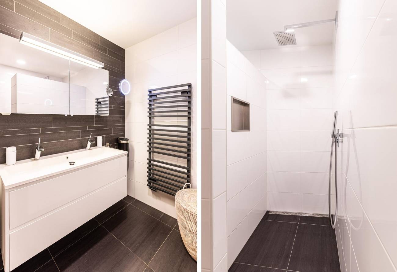 Het appartement heeft één grote slaapkamer en een kleinere slaapkamer, beide met uitzicht op zee èn een moderne luxe badkamer.