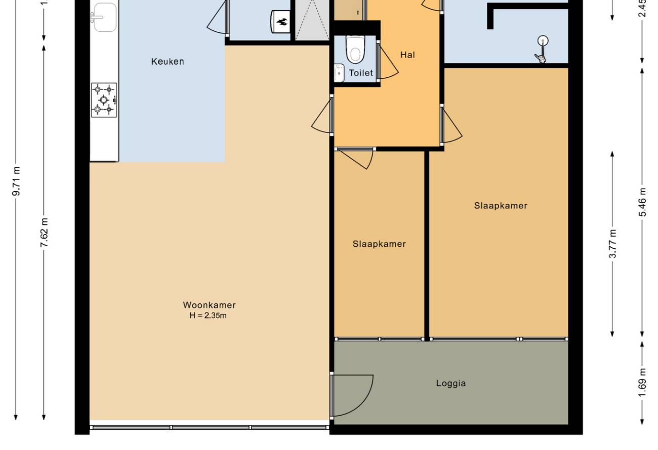 | Kamers | 3 kamers (2 slaapkamers) |