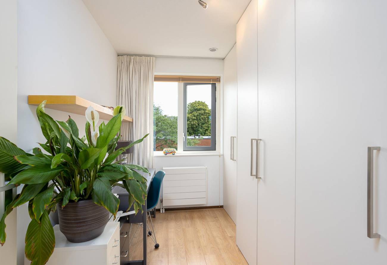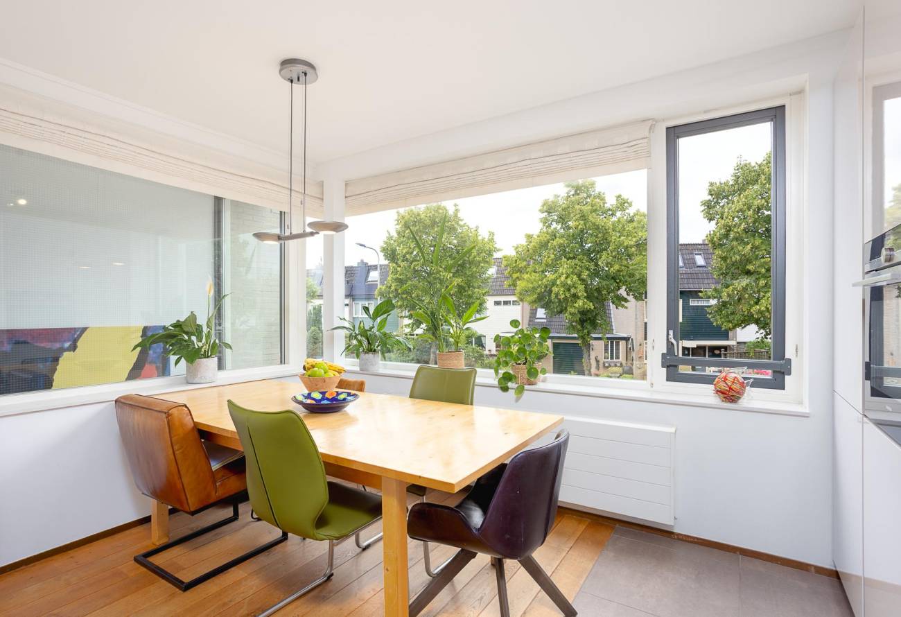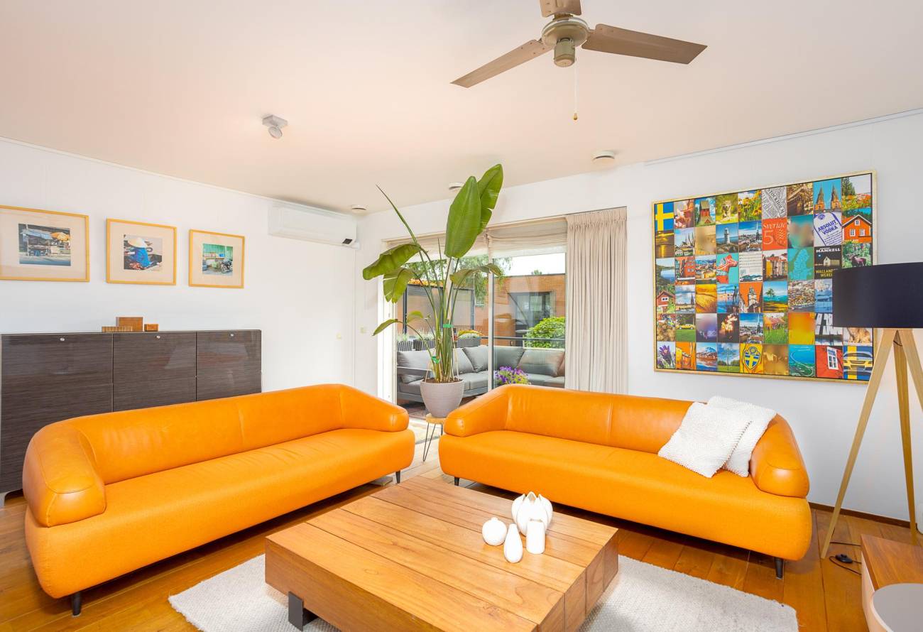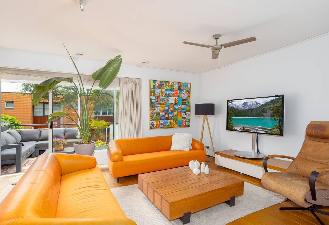 Op de eerste verdieping treft u de woonverdieping, met een moderne ruime keuken voorzien van verschillende inbouwapparatuur, waaronder een combi oven, koel-vriescombinatie (Liebherr Biofresch), inductie kookplaat (BORA), heet waterkraan (Quooker) en een vaatwasser. Aan het woongedeelte is het dakterras verbonden. In de keuken treft u een plavuizen vloer en in de woonkamer een houtenvloer. De ruimte is voorzien van airconditioning.