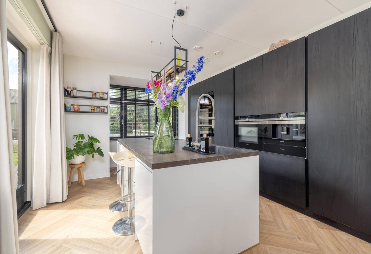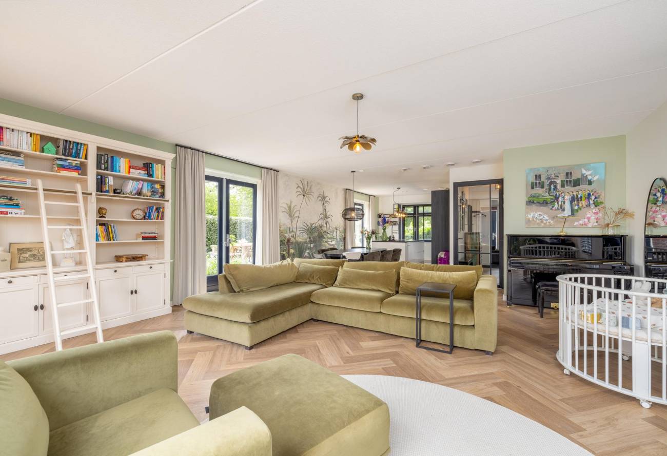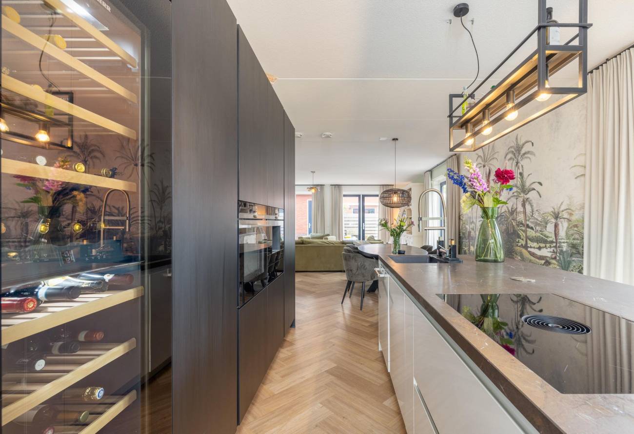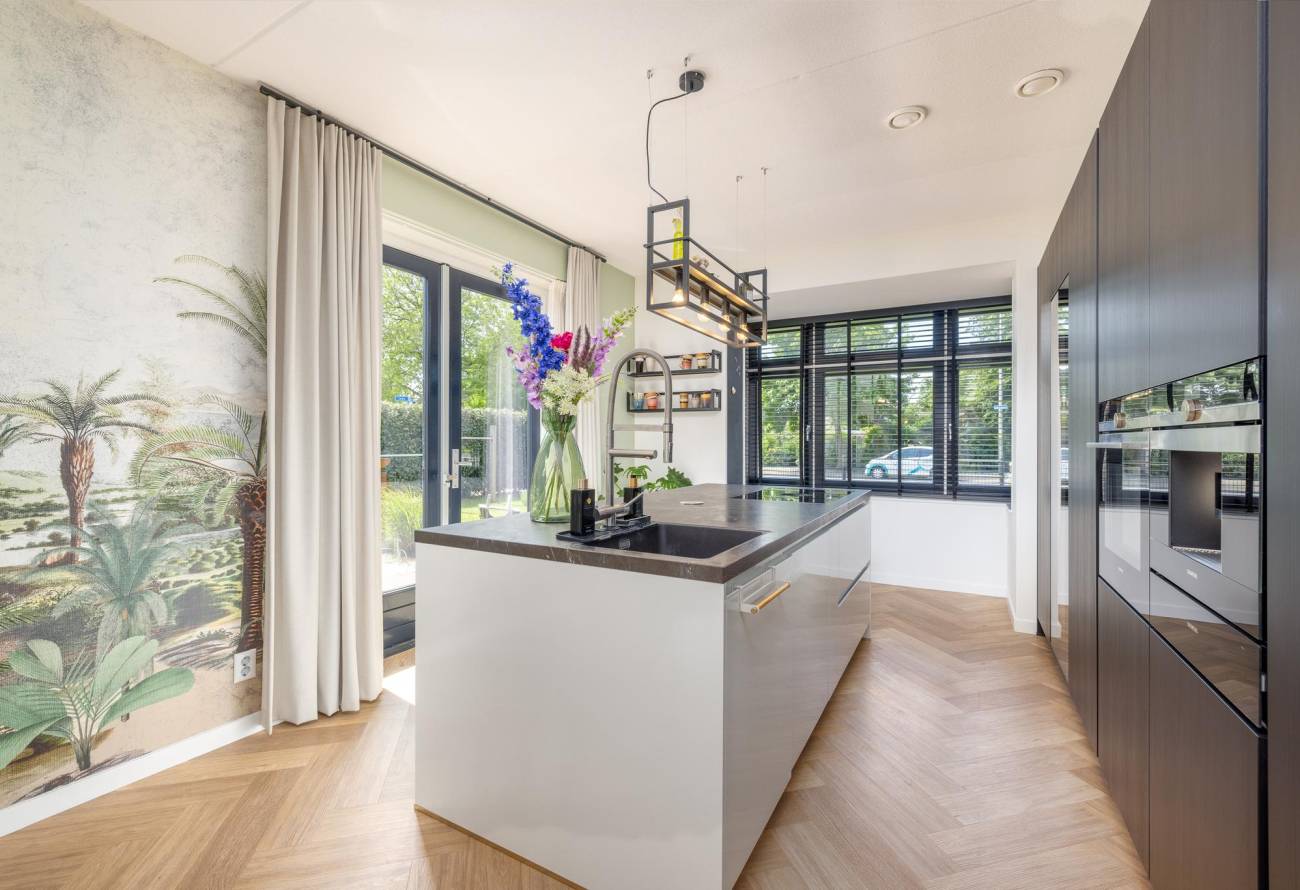 Bij binnenkomst word je verwelkomd door de ruime hal die leidt naar de royale woonkamer. Hier zorgen de openslaande deuren voor veel lichtinval en een naadloze overgang naar de fraai aangelegde tuin. De moderne keuken is van alle gemakken voorzien, inclusief een wijnklimaatkast en een Quooker, ideaal voor de kookliefhebber.
