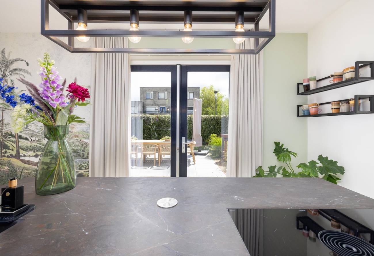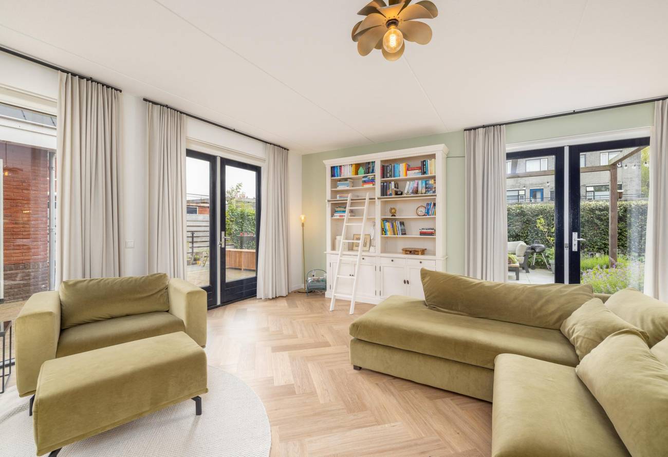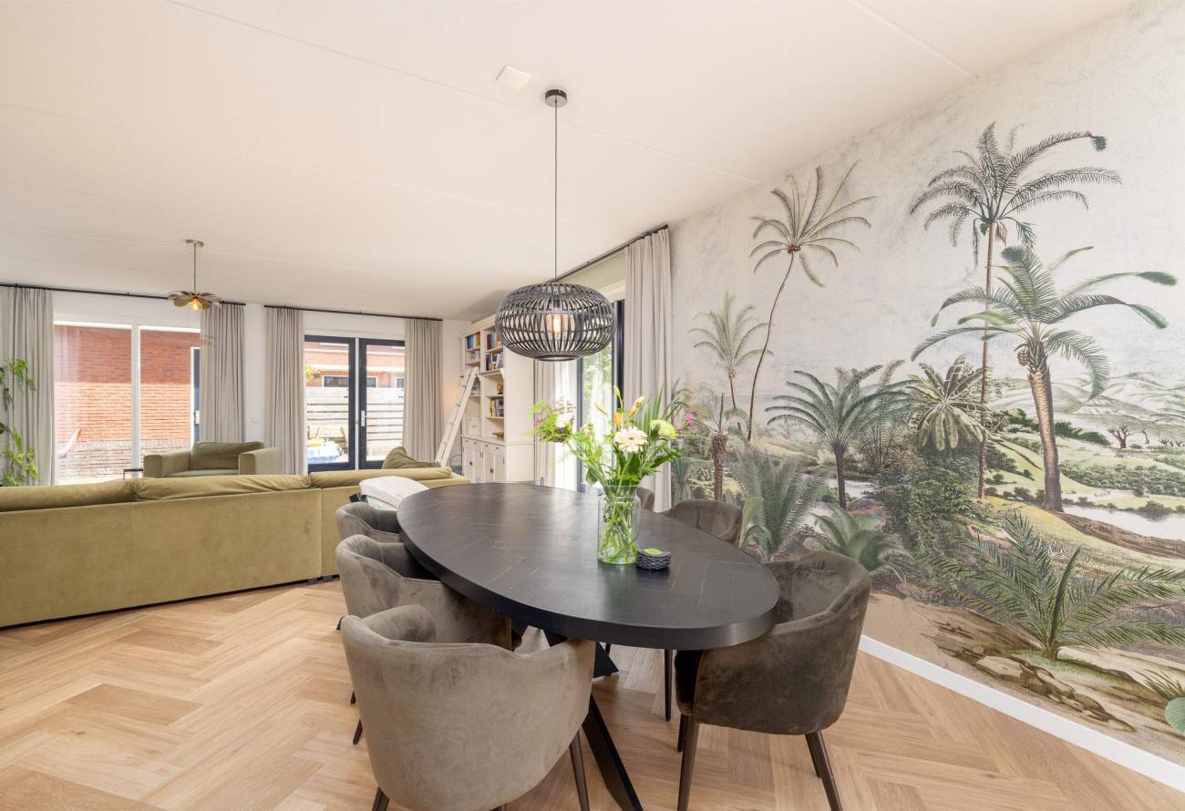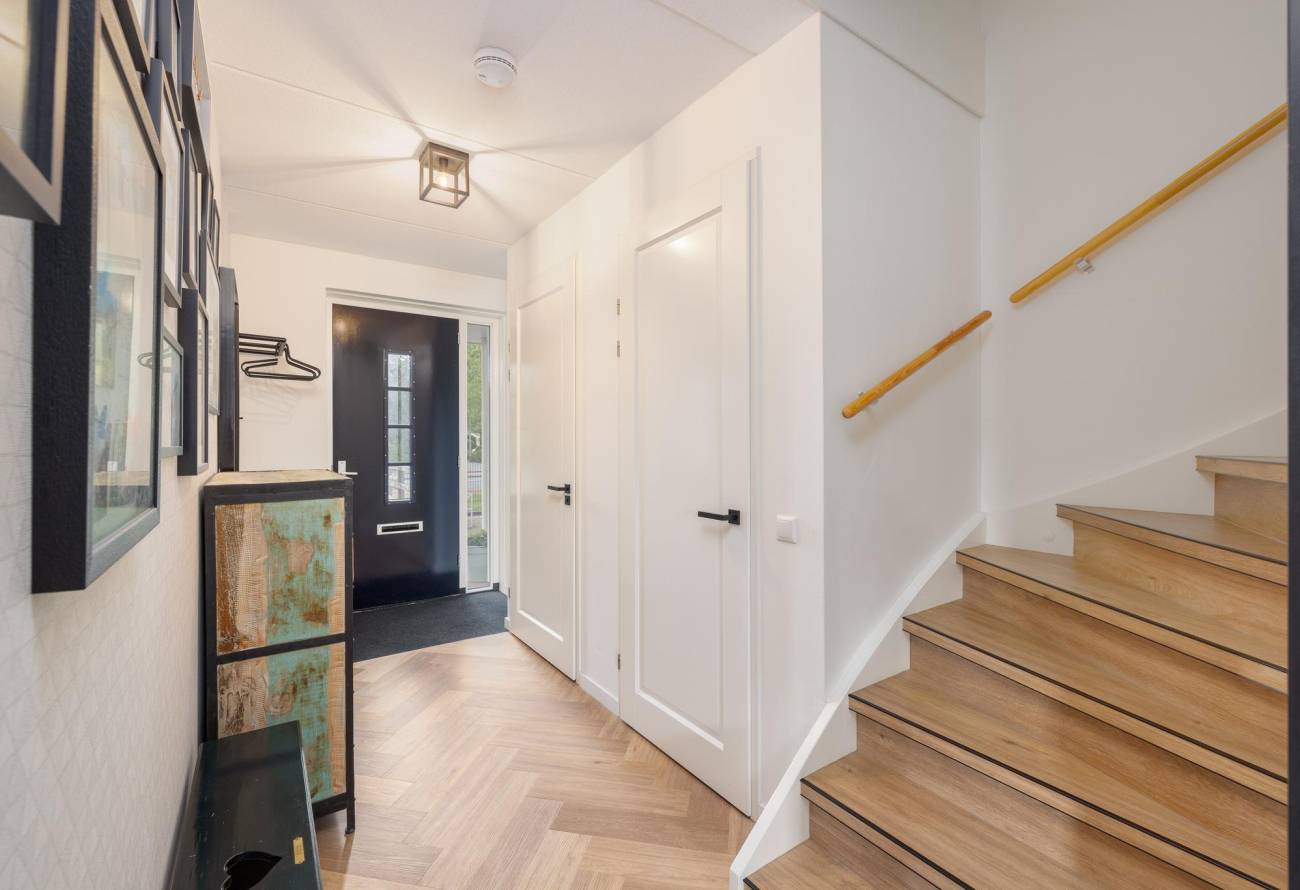 Bij binnenkomst word je verwelkomd door de ruime hal die leidt naar de royale woonkamer. Hier zorgen de openslaande deuren voor veel lichtinval en een naadloze overgang naar de fraai aangelegde tuin. De moderne keuken is van alle gemakken voorzien, inclusief een wijnklimaatkast en een Quooker, ideaal voor de kookliefhebber.