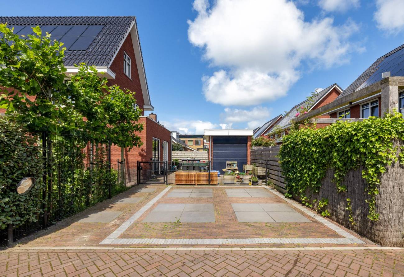 De vrijstaande garage biedt extra opslagruimte en plek voor de auto. Vóór de garage is nog eens parkeergelegenheid voor 2 auto’s.