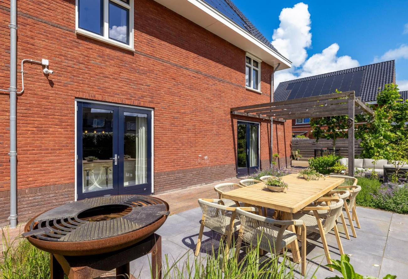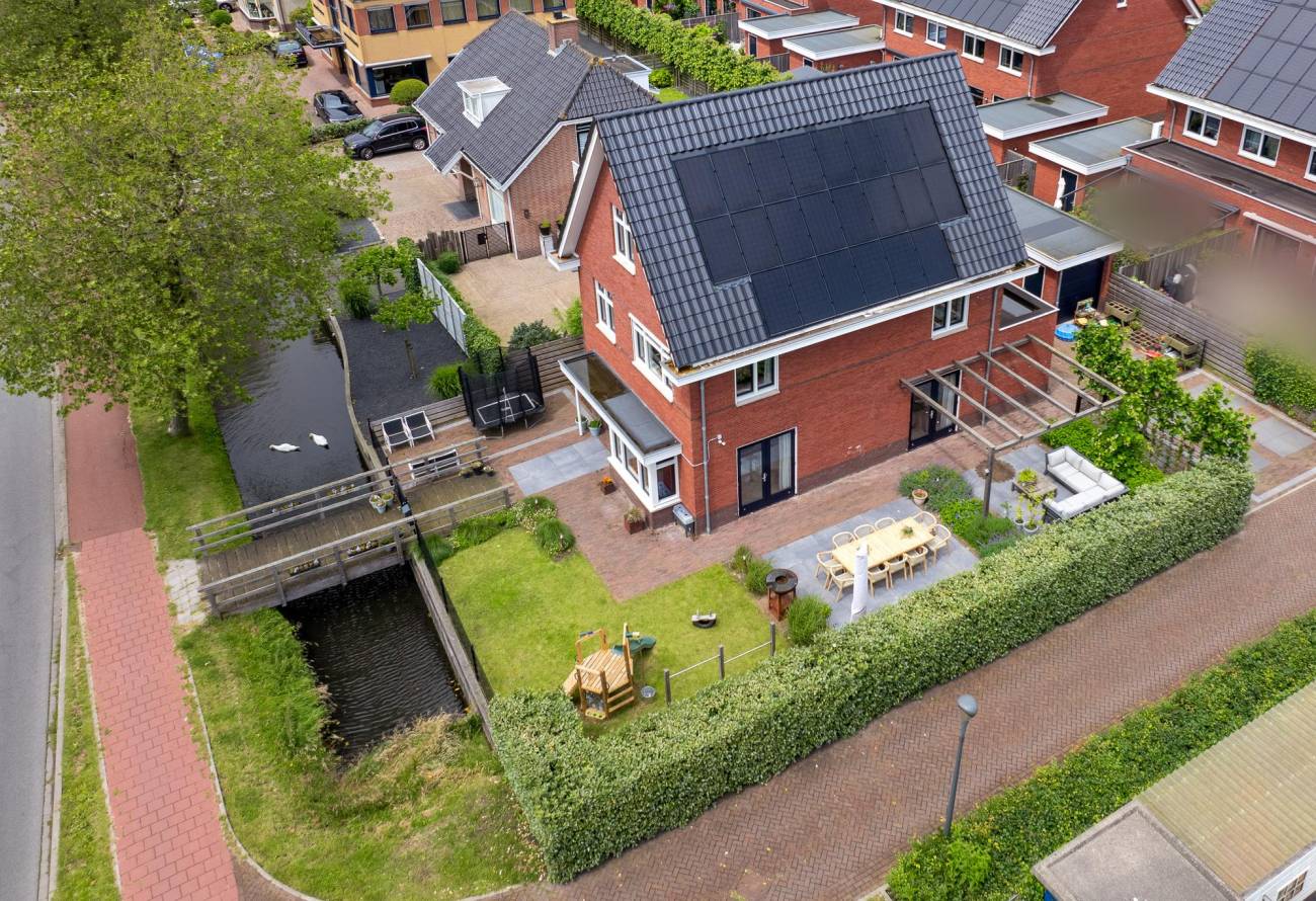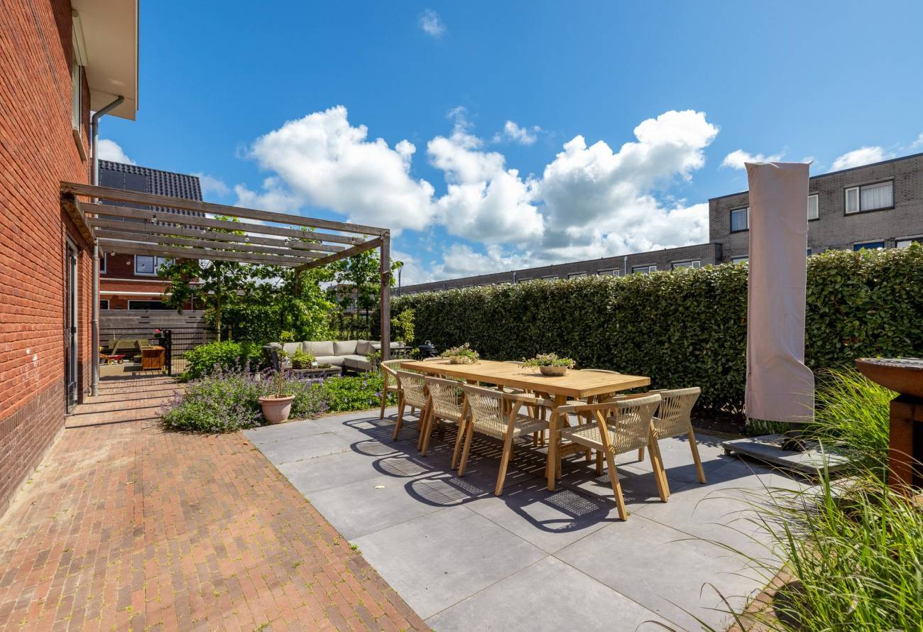 De fraaie tuin rondom de woning heeft een sfeervolle pergola en diverse terrassen om te genieten van de zon of juist van de schaduw. Of je nu wilt tuinieren, spelen met de kinderen, of gewoon ontspannen, hier kan het allemaal. Op het terras, gelegen aan het water, is het heerlijk genieten van de zon en het fraaie uitzicht.